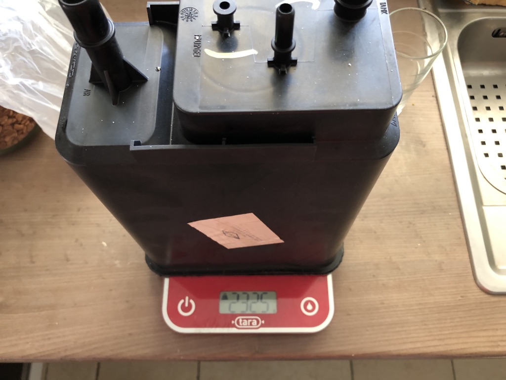 Cette première étape a révélé des bougies un chouia encrassées, une huile de boîte et un filtre qui méritaient clairement d'être changés, et un canister bien plein. J'adore le test de la pesée de Gemini, alors voici le mien :