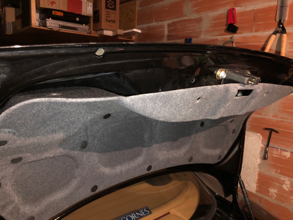 J'ai également déshabillé le coffre, afin d'enlever des petits bouts de rivets d'anciennes plaques d'immatriculation, faisant un petit bruit métallique à l'ouverture ou fermeture du coffre. J'en ai récupéré 5 ou 6 mais UN