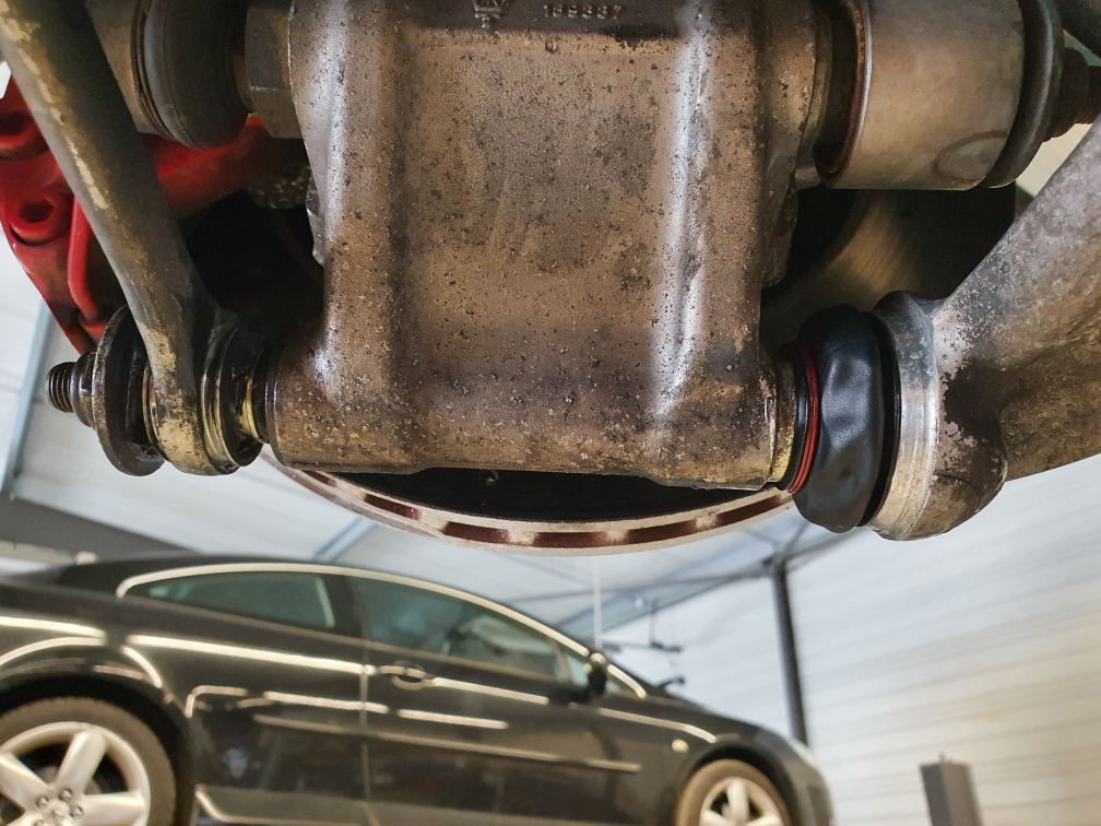 On décide donc de changer la rotule de biellette et le cache-poussière de triangle à gauche (et le cache-poussière de droite en passant), toujours chez Abba / BRIAGO. Tout se passe bien, sauf que le cache-poussière de la rotule (et pas du triangle, vous suivez ?