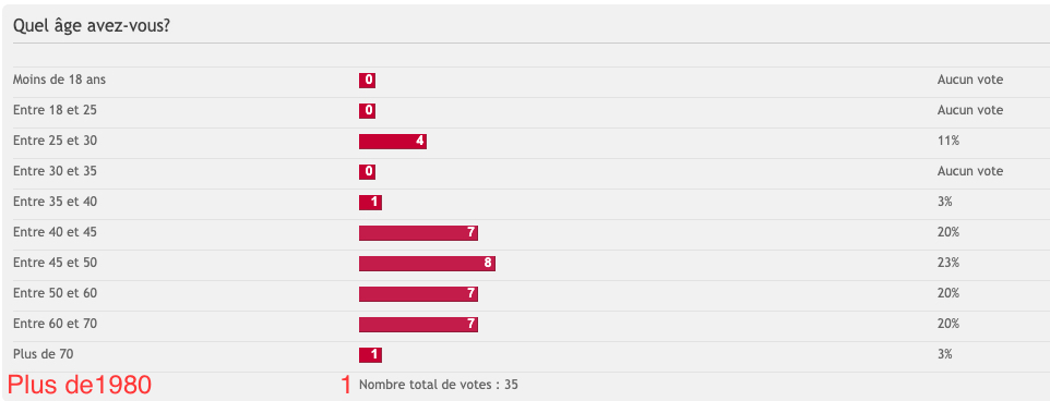 J'apprécierai que les "entre 45 et 50" arrêtent de participer merci..... Nan mais...