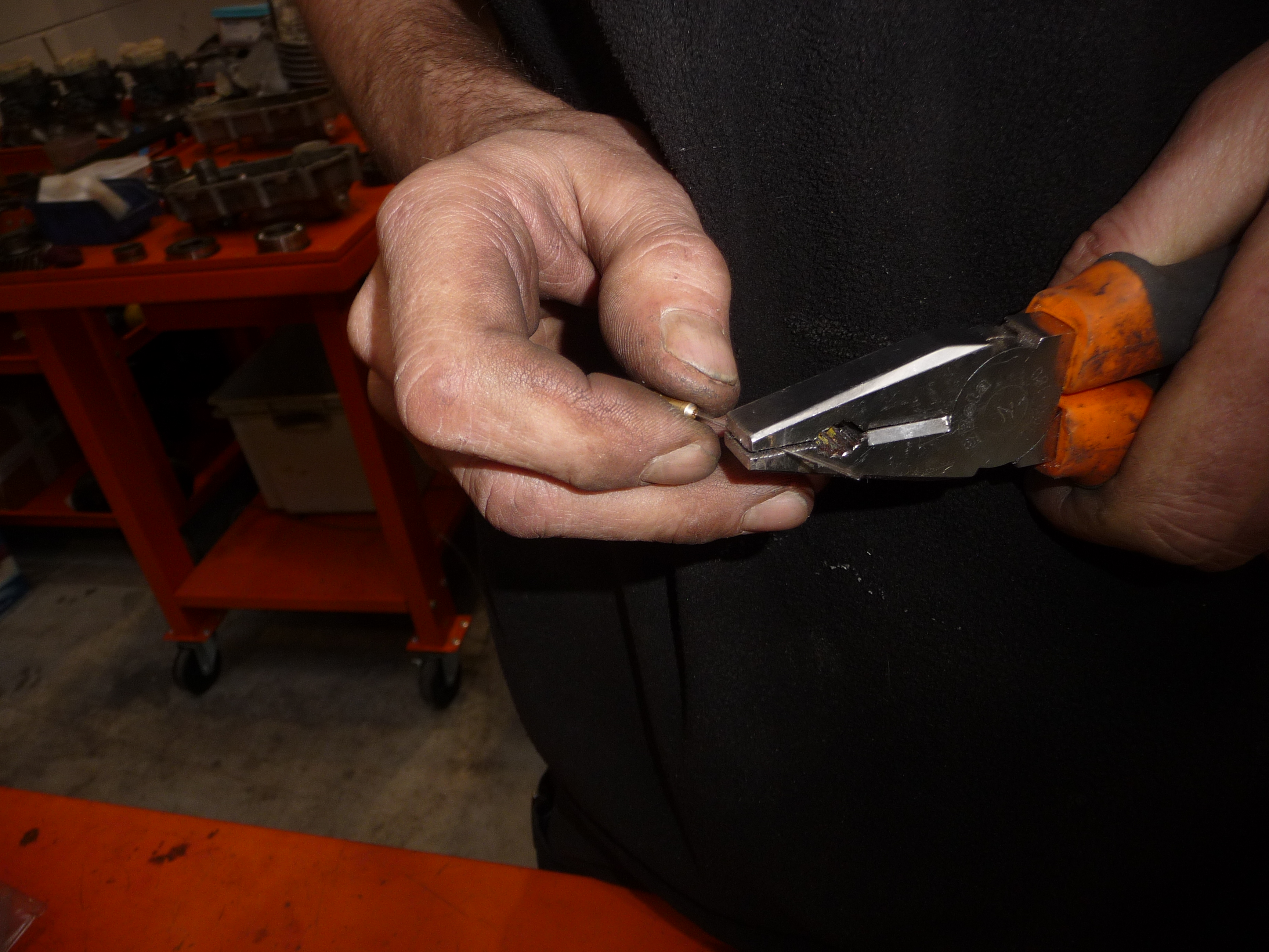 Travail de "débouchage" de conduits d'essence sur des Weber.