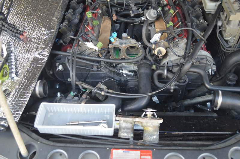 Cet endroit est-il sous le capteur de température de l'eau (connecteur bleu) à deviner? Je me demande si c'est entre le bloc-cylindres et le boîtier thermique. Souhaitez-vous retirer le LLC et retirer le boîtier thermique? C'est tout pour aujourd'hui. De ce soir au nouvel an, Hokuriku devrait être difficile. J'ai le sentiment qu'il restera tel quel pendant un certain temps.