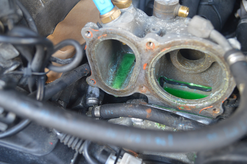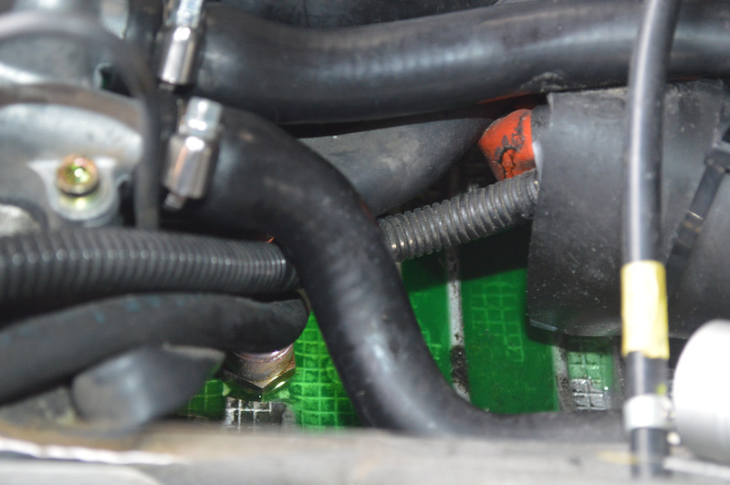 De plus, il y a des traces de fuites LLC sur le tuyau de retour du turbo au milieu des trois frères de tuyau à l'arrière du boîtier thermique .