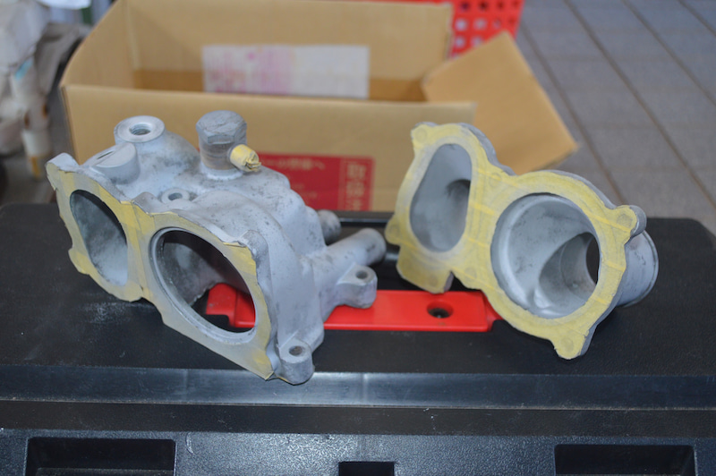 Prenez une photo pour savoir où et ce qui est attaché. Rive droite. Il s'agit d'un collier de serrage de type à calfeutrer rive gauche , il doit donc être remplacé par un type à serrage par boulon. Toutes les pièces de serrage en plastique qui fixent chaque tuyau se briseront. La détérioration due au vieillissement est sévère. C'est parti. Après cela, déconnectez le régulateur de pression et le capteur de carte à l'arrière avec le support , retirez le tuyau lié à l'aspiration et retirez enfin le tuyau du servofrein pour retirer le collecteur d'admission. N'oubliez pas de guérir l'orifice d'admission. Trois tuyaux visibles, refroidissement de la turbine au milieu, retour du tuyau gauche de la tête de rive gauche, retour du tuyau droit et chauffage de la tête de rive droite. Sous le tuyau central se trouve un tuyau de retour du réchauffeur qui se connecte à ce boîtier de thermostat. Il n'y a pas de fuite dans la partie de connexion.