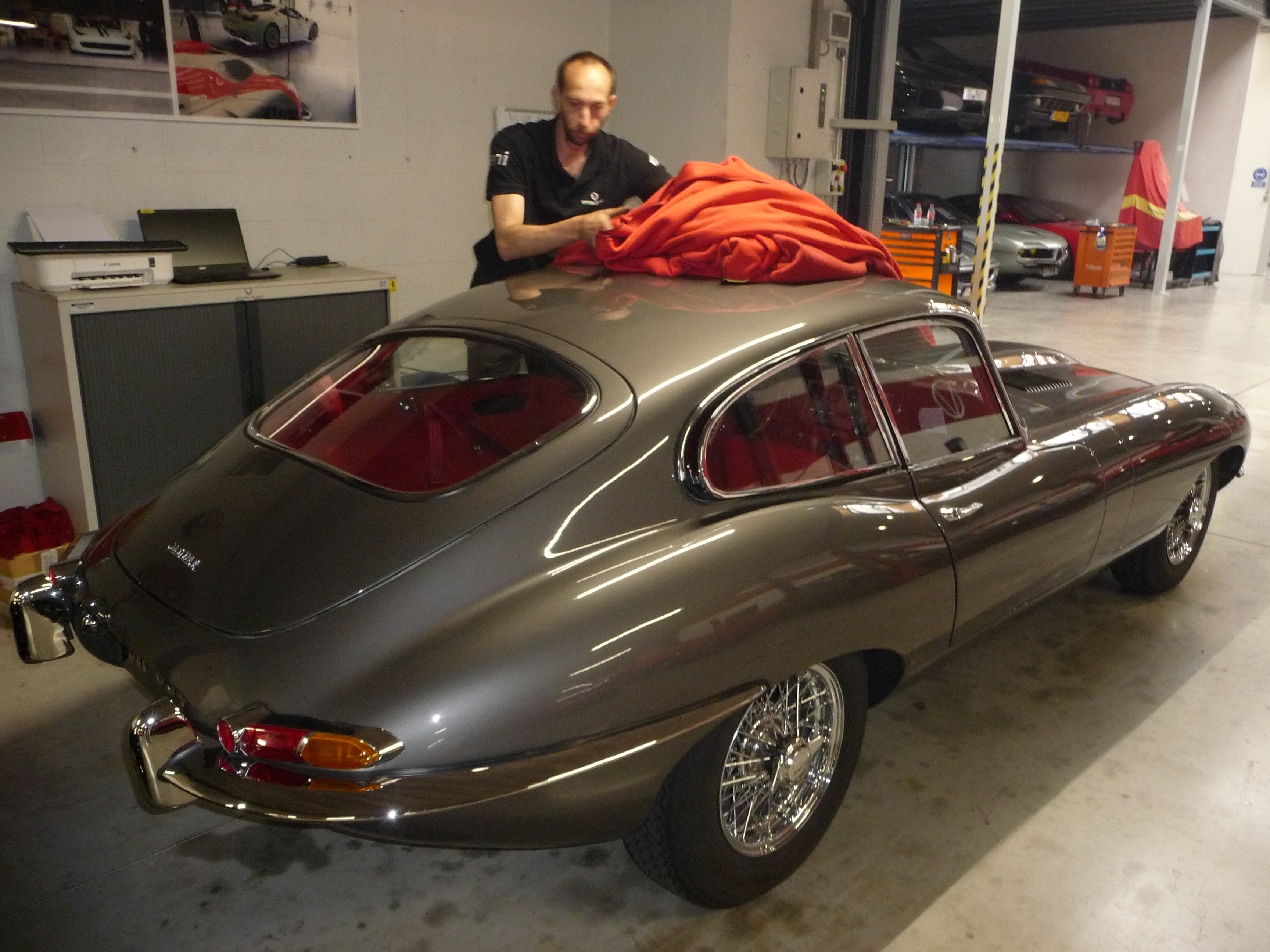 La raison en est l'utilisation sur cette Type E de roues à fils non d'origine, probablement des MWS (ex-Dunlop qui était la marque utilisée par Jaguar).