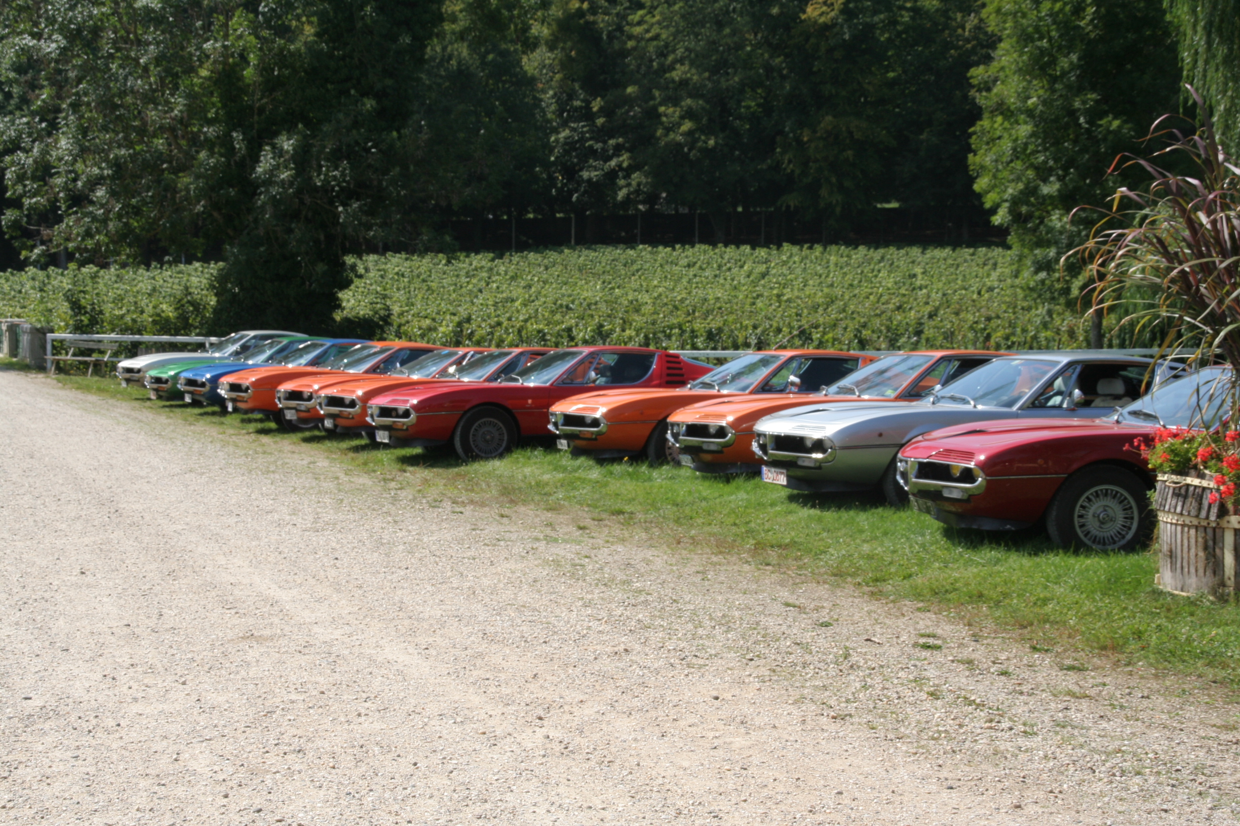 Il y avait aussi une Bora. La Montreal faisait tout petit à côté. La Bora était impressionnante, je crois pas que j’oserais conduire une telle auto. Par contre, je me serai bien vu avec cette Montreal si elle n’était pas hors de mon budget et si la réputation de son moteur n’était pas autant sulfureuse (la difficulté à régler l’injection je crois et le fait qu’il ne faut absolument pas démarrer avec les roues inclinées). Tient, elle a des airs de Merak, non?