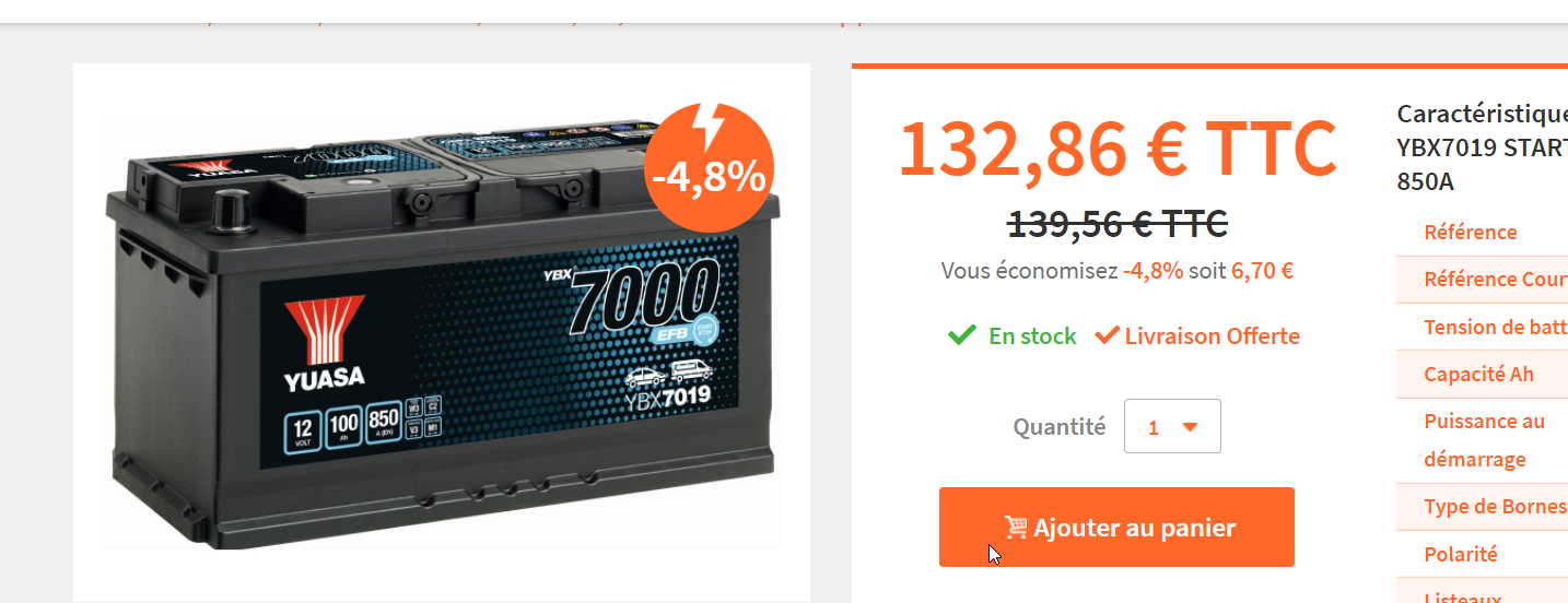 https://www.batteryset.com/batteries-au ... 37573.html La voiture à redémarrée après quelques heure de charge mais elle est HS et je pense d'origine de 2013 c'est une Fiam 100Ah 850A