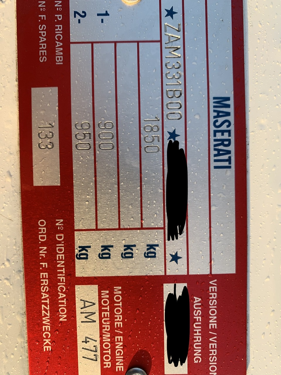 Pour la plaque d'identification, peut être demander tout simplement chez Maserati ?