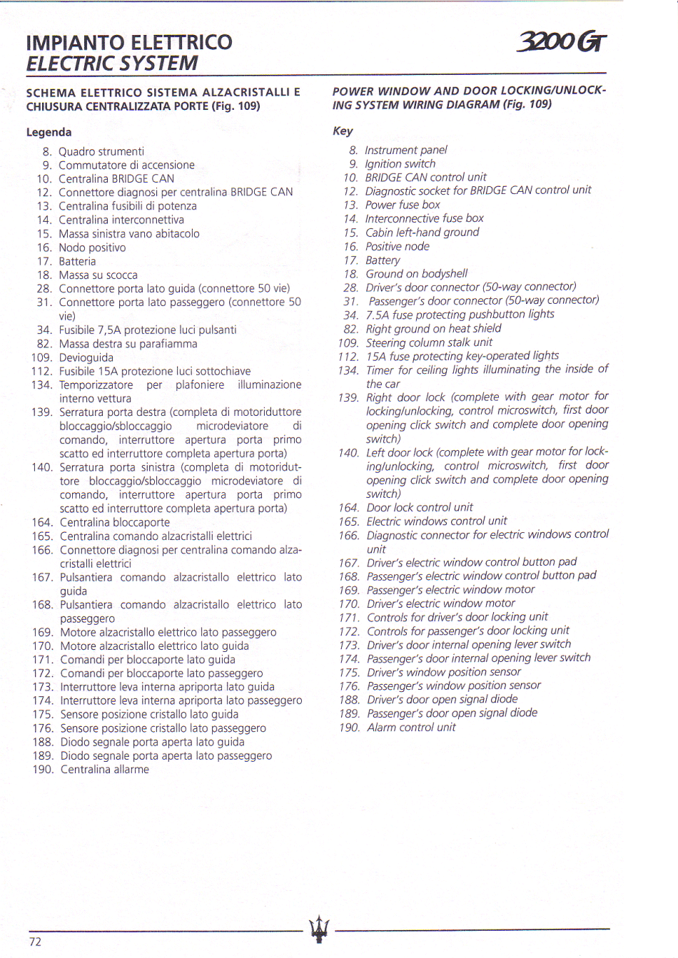 Ci-dessous, le diagramme de la partie "vitre électrique", et la légende associée.