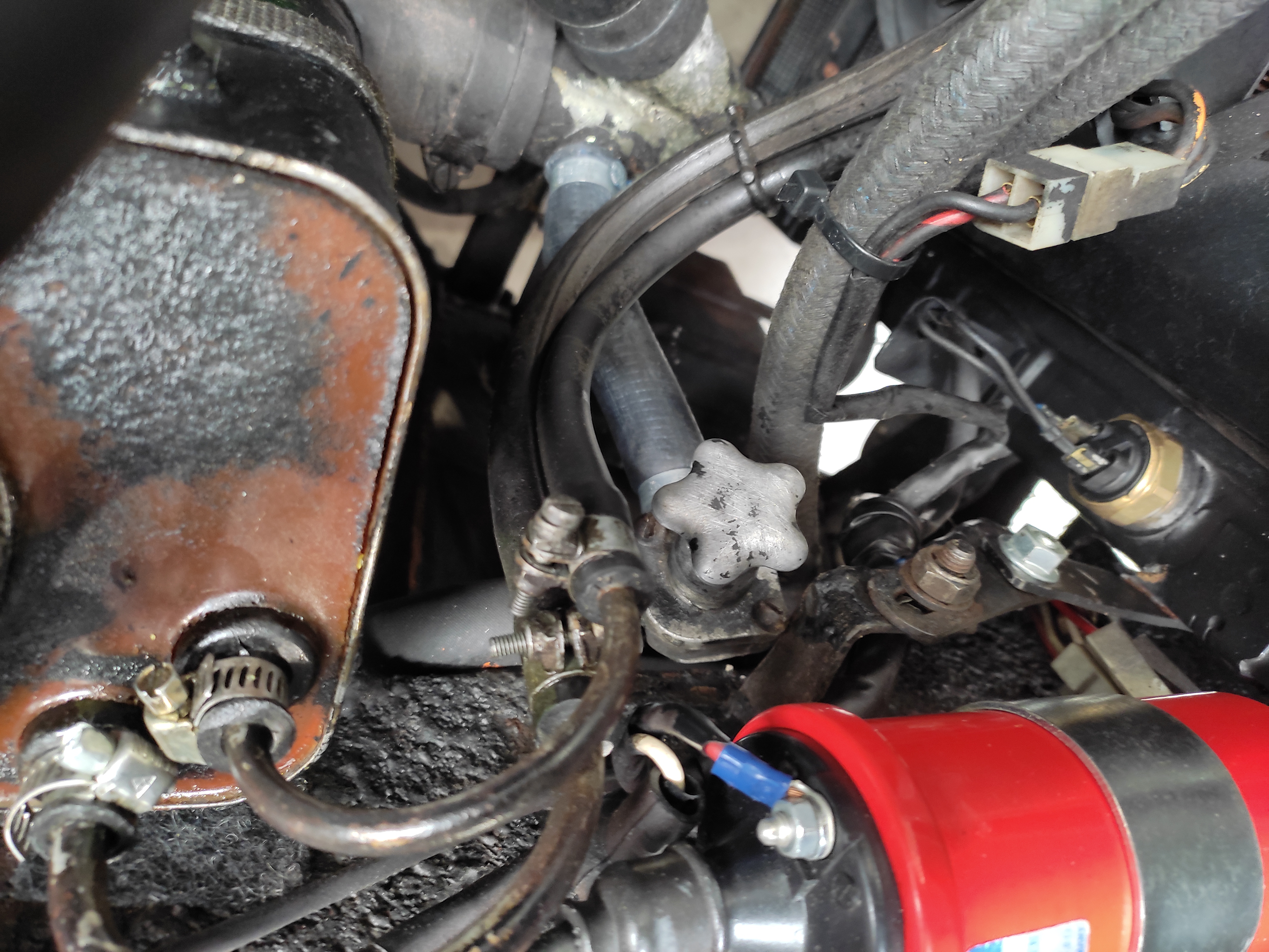 Le circuit de refroidissement/chauffage de l'Indy comporte une vanne intéressante (en étoile, au milieu ci-dessous) qui permet de bloquer la circulation d'eau chaude dans le radiateur de chauffage. Utile l'été!