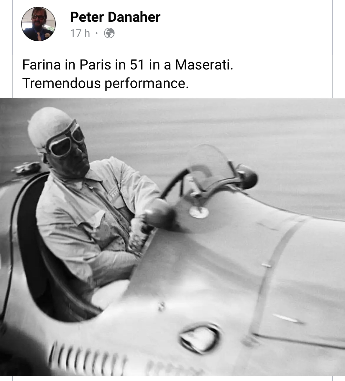 Nino Farina, premier champion du monde de Formule 1 en 1950 sur Alfa-Romeo, ici aux commandes d’une Maserati 4CLT dans une attitude qui révèle la force centrifuge et l’adresse du pilote. La Maseratitude !!!