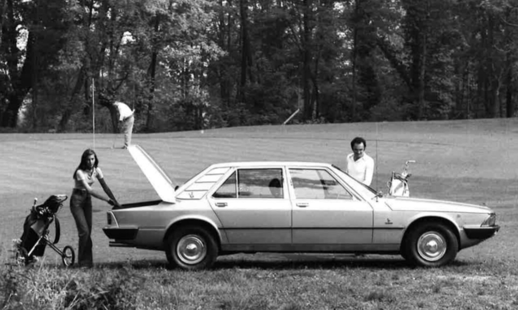 Quand Gandini dessina la Ghibli II, 18 ans plus tard, il réutilisa mais de façon plus discrète l’ouverture de la malle sur le haut de l’aile, en reprenant en décalé le profil, pour alléger visuellement l’arrière massif de l’auto :