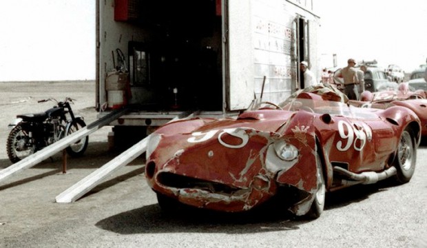vu ici en Septembre 1957 derrière une 450S avec laquelle le pilote,John Shelby, avait un peu glissé =