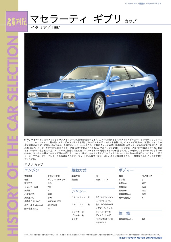 Un livre sur la Ghibli II, Fanch ? hé, ce serait une idée. Faut que je finisse celui sur Vittoria (la 3200GT transformée en barquette de course par Domi13) et que je finisse la série d'articles sur les Biturbo où j'en suis à la moitié. Mais oui, c'est une bonne idée