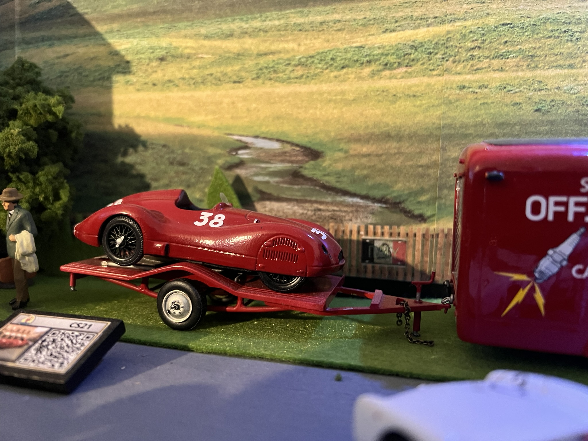 Je vous livre donc la version 1/43 de cette 4CL Streamliner, peinte en rouge, donc en livrée GP de Tripoli, sur la remorque tractée par le Fiat 621