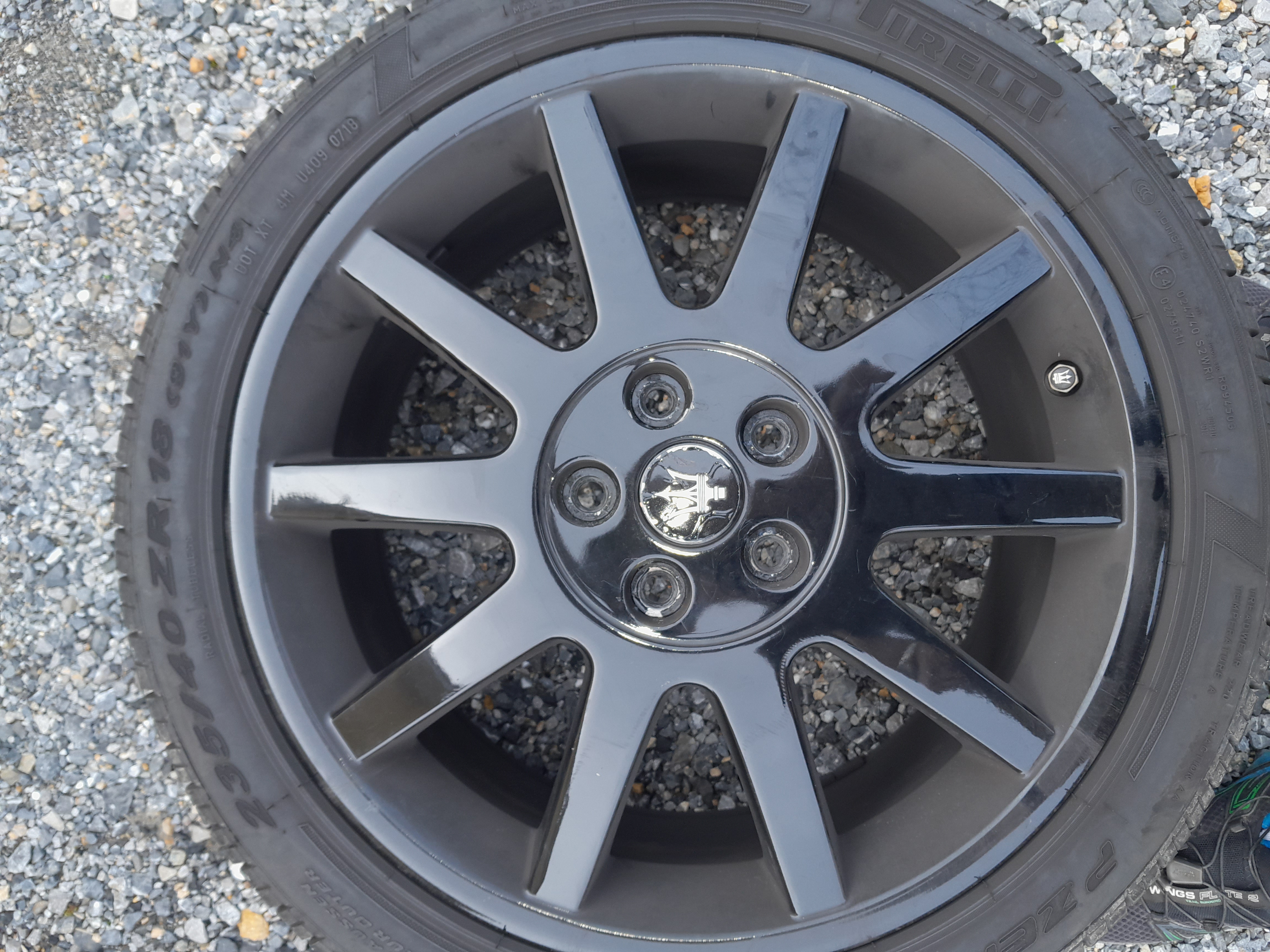 J'ai changé les habillages de moyeu qui avait été repeints et dont la peinture se barrait. Les nouveaux sont des OEM maserati, je ne devrait pas avoir de problème de peinture dessus 8-) .