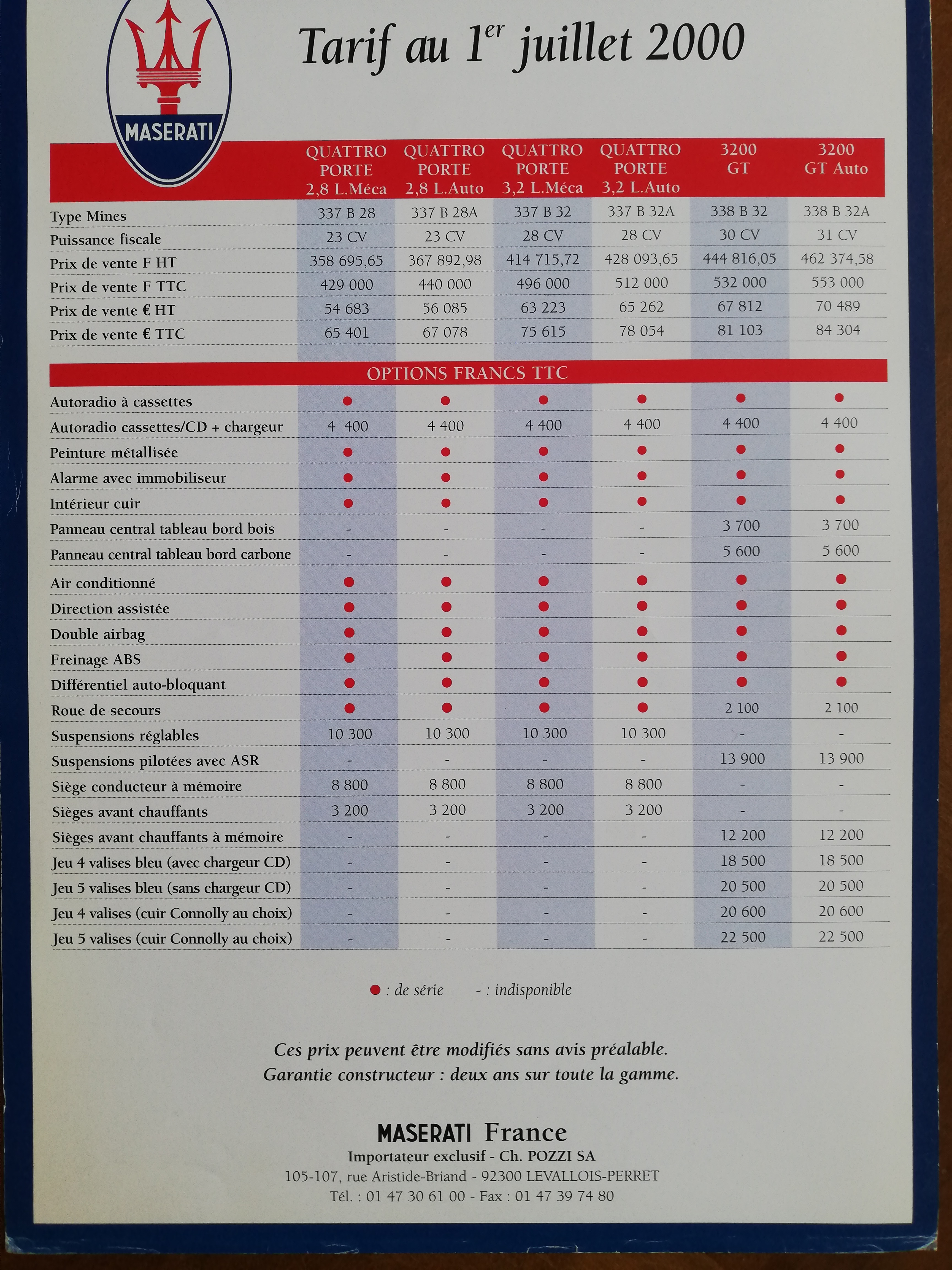 Jamais existé sur 3200GT, seulement en option sur 4200.