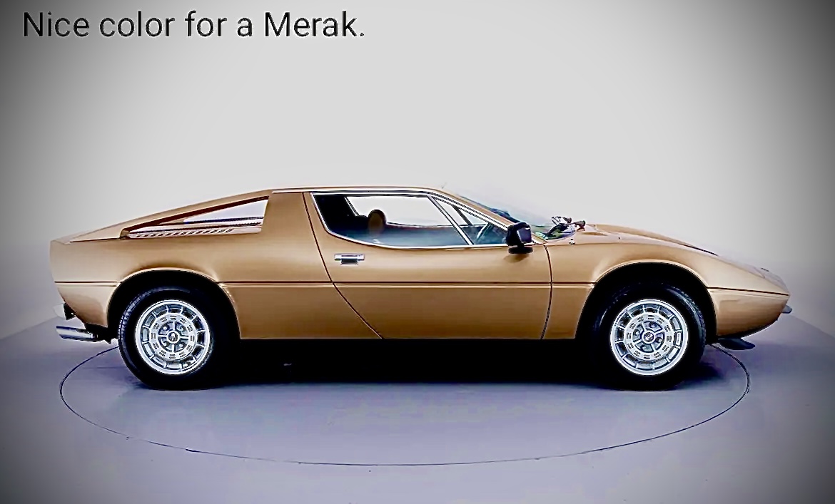 : "Une des première Merak née sous l’ère de Tomaso, (alors nouveau propriétaire de Maserati) avec pour résultante une re-visite et une fiabilisation moteur et mécanique réalisée par le fameux motoriste historique de la marque, Giulio ALFIERI, revenu chez Maserati uniquement pour l’occasion."