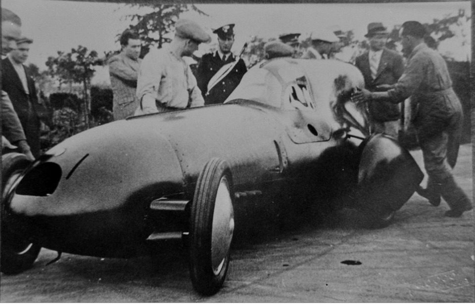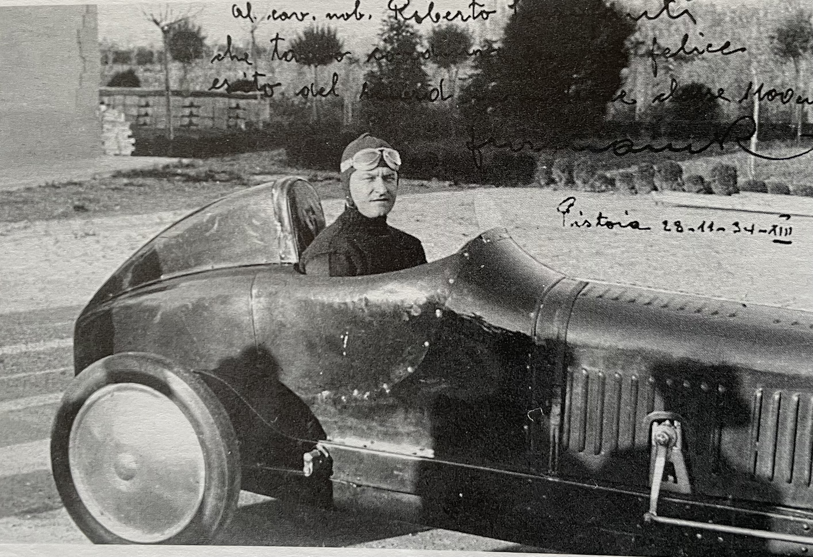 Le 28 novembre 1934, Furmanik dans sa voiture à Pistoia (là où l’autoroute Firenze-mare est la plus rectiligne) :