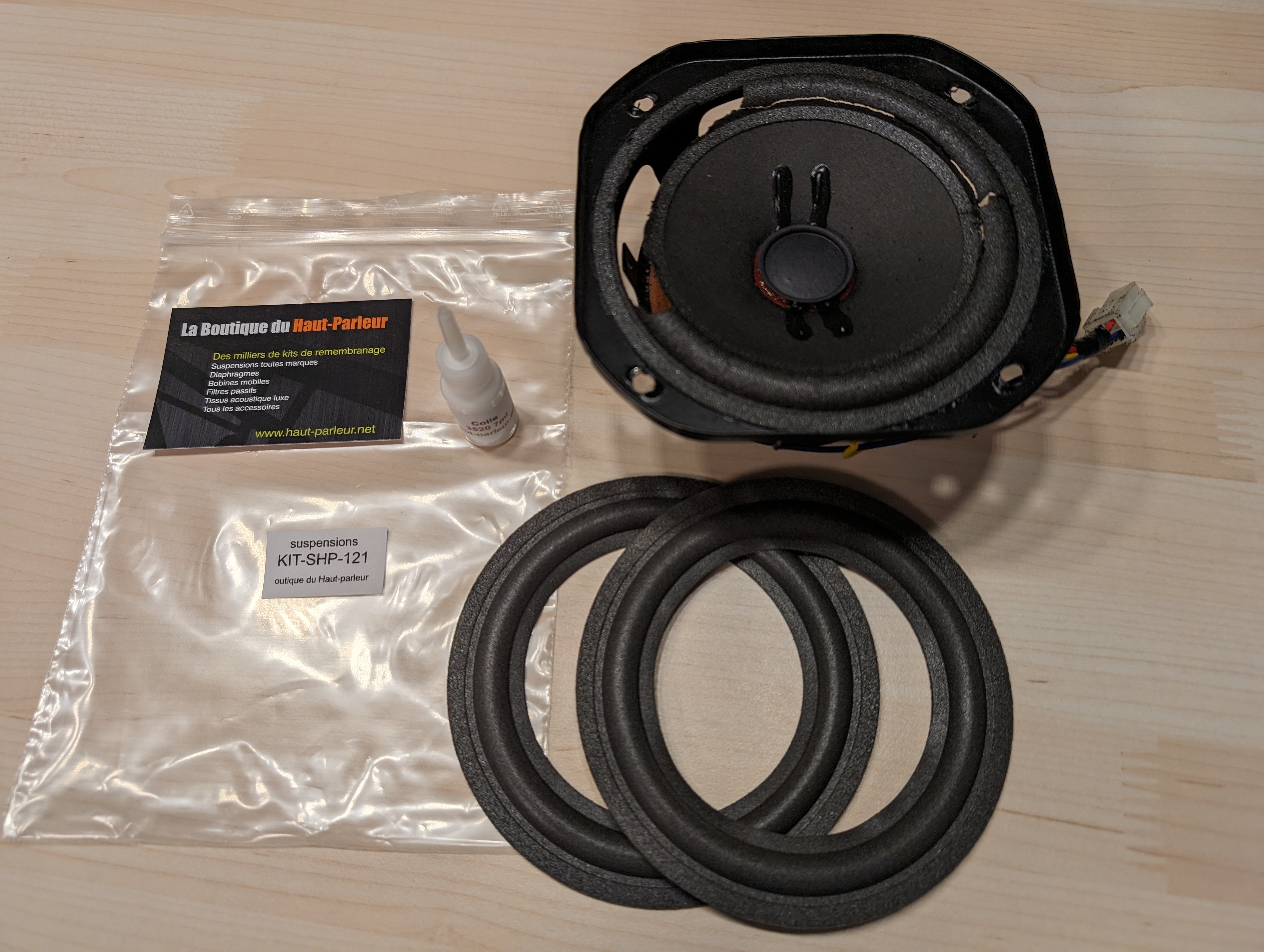 Hop et voilà ça fait du bien réparation des 4 enceintes arrière car les suspensions étaient mortes.