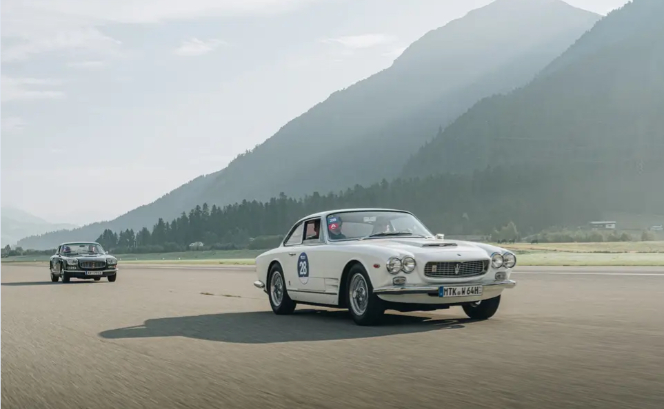 Pour fêter les 110 ans de Maserati, les bolides ont été lâchés sur la piste de l’aéroport de Saint-Moritz. Photo Eugenio Clamer pour Passione Engadina :
