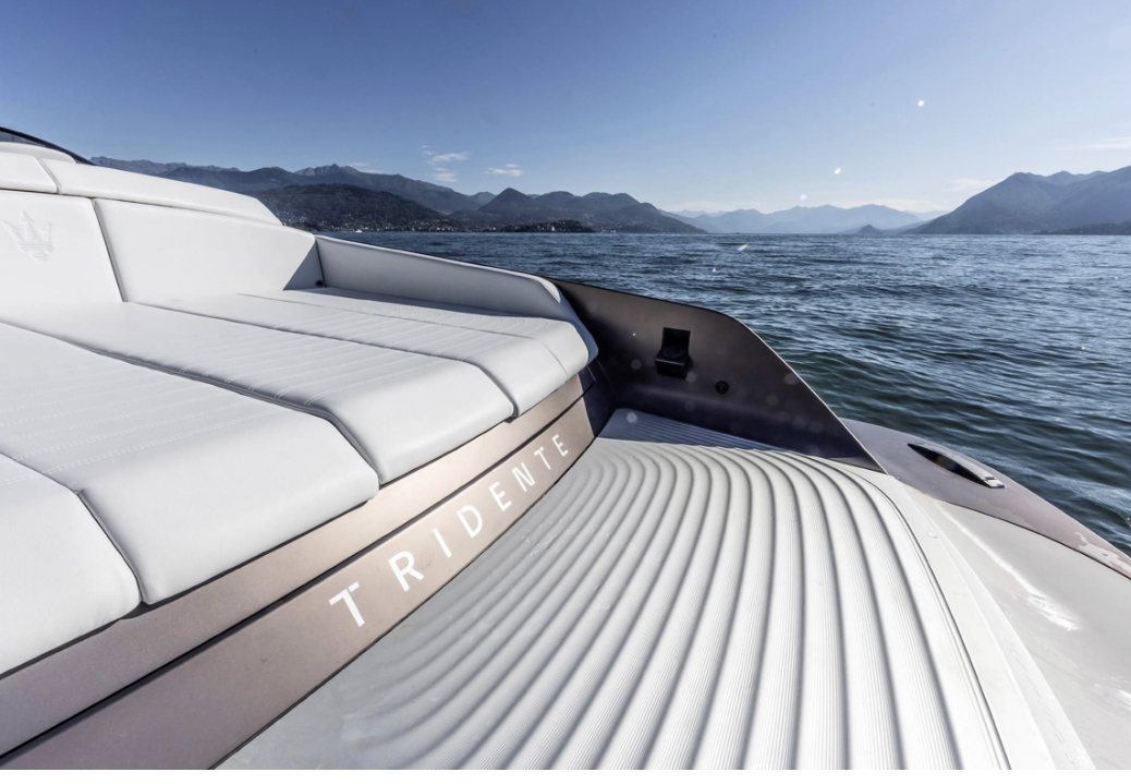 Maserati a révélé sa nouvelle offre commerciale, le bateau Tridente (motorisation électrique), présenté tout récemment en même temps que la GranCabrio Folgore électrique :