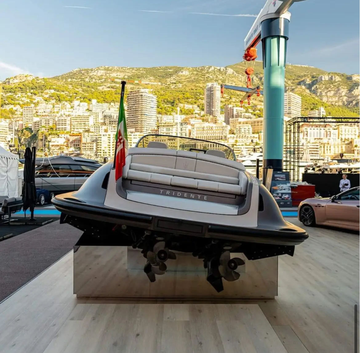 Le bateau Tridente est présenté au Monaco Yatch Show du 25 au 28 septembre 2024 en compagnie d’une GranCabrio Folgore, la première décapotable électrique de grand luxe au monde :