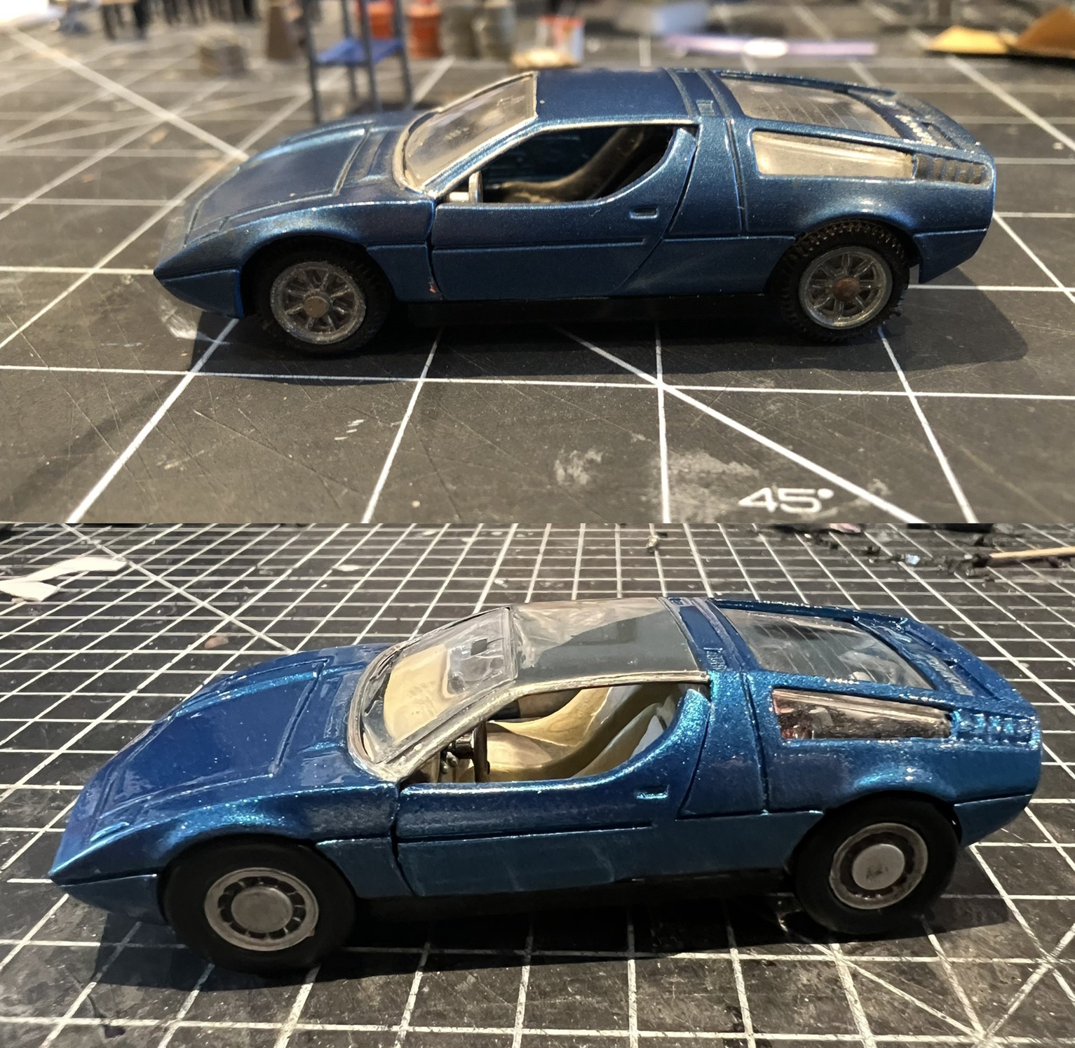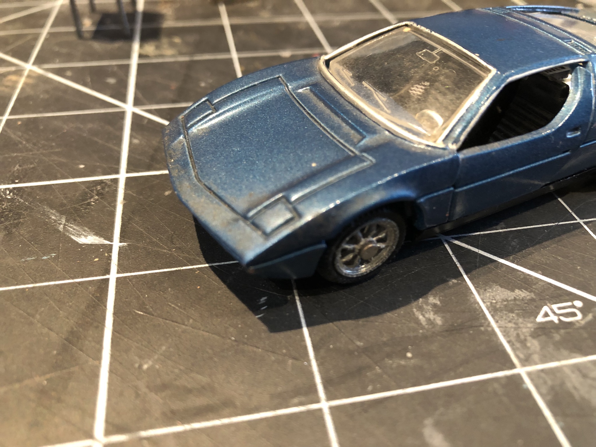 J'avais acquis au détour d'achats compulsifs nocturnes, une BORA 1/43 Mebetoys dans un état "Sortie de Grange" que j'avais mis de côté.