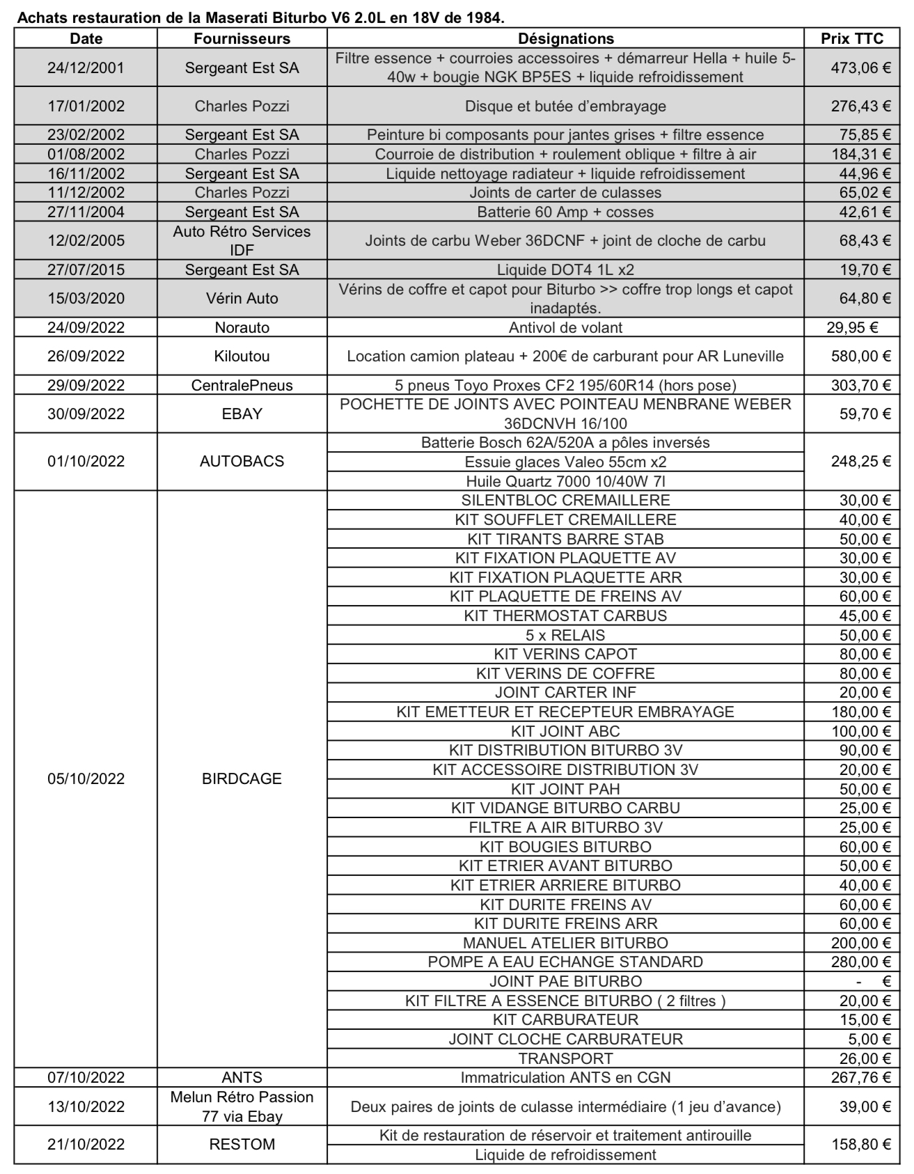 Après l’avoir sortie de sa grange il y a maintenant deux ans, investi plus de 7k€ de pièces détachées et passé en temps perso plus de 350h de travail les soirs et week end pour la remettre en route… elle est désormais en bel état de fonctionnement et de présentation pour en profiter le week end… même si une Biturbo a clairement toujours besoin de soins continus :D