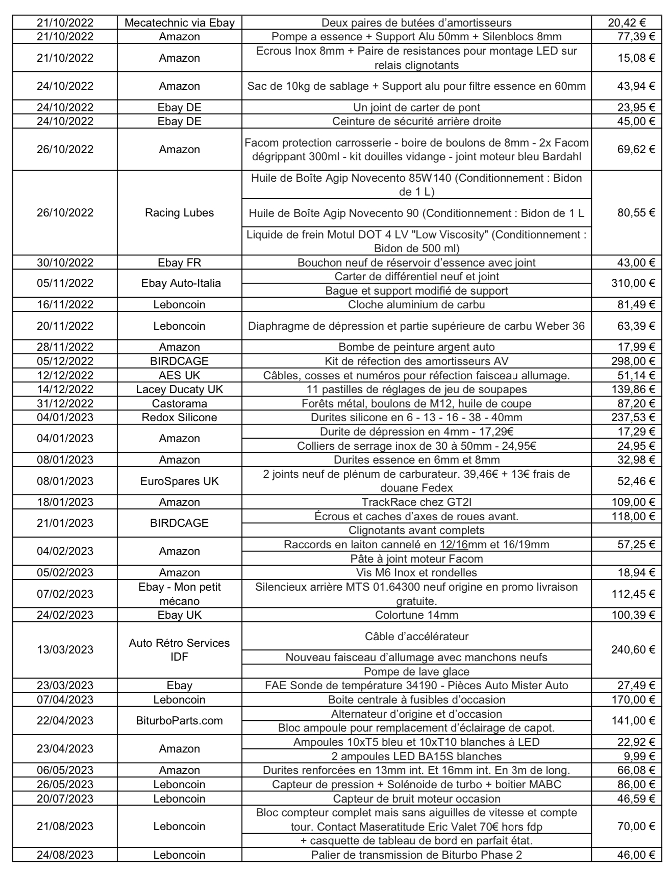 Gianni a écrit : ven. 15 nov. 2024 10:44 Hello, peux-tu nous montrer des photos de l'intérieur STP ? Je rejoins l'analyse de Gemini, mais j'aurais tout de même tendance à donner une estimation un peu plus élevée, tout en gardant le plafond psychologique des 15k€. Entre 13 et 14, en somme. Il s'agit quand même d'une (apparemment) magnifique vieille dame de 40 ans, et les Biturbo commencent doucettement à voir leur image s'améliorer :Maze Les photos de l'intérieur nous aideront peut-être à affiner ;)