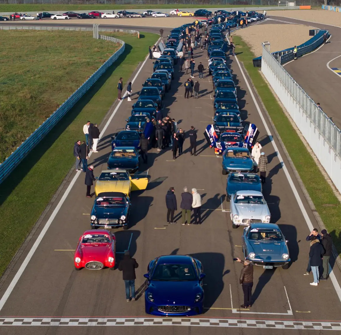 Puis tout ce beau monde se retrouve ensuite à 10 h du matin sur l’Autodromo di Modena (le nouveau à Marzaglia, l’ancien dans Modena est devenu le parc public Enzo Ferrari).