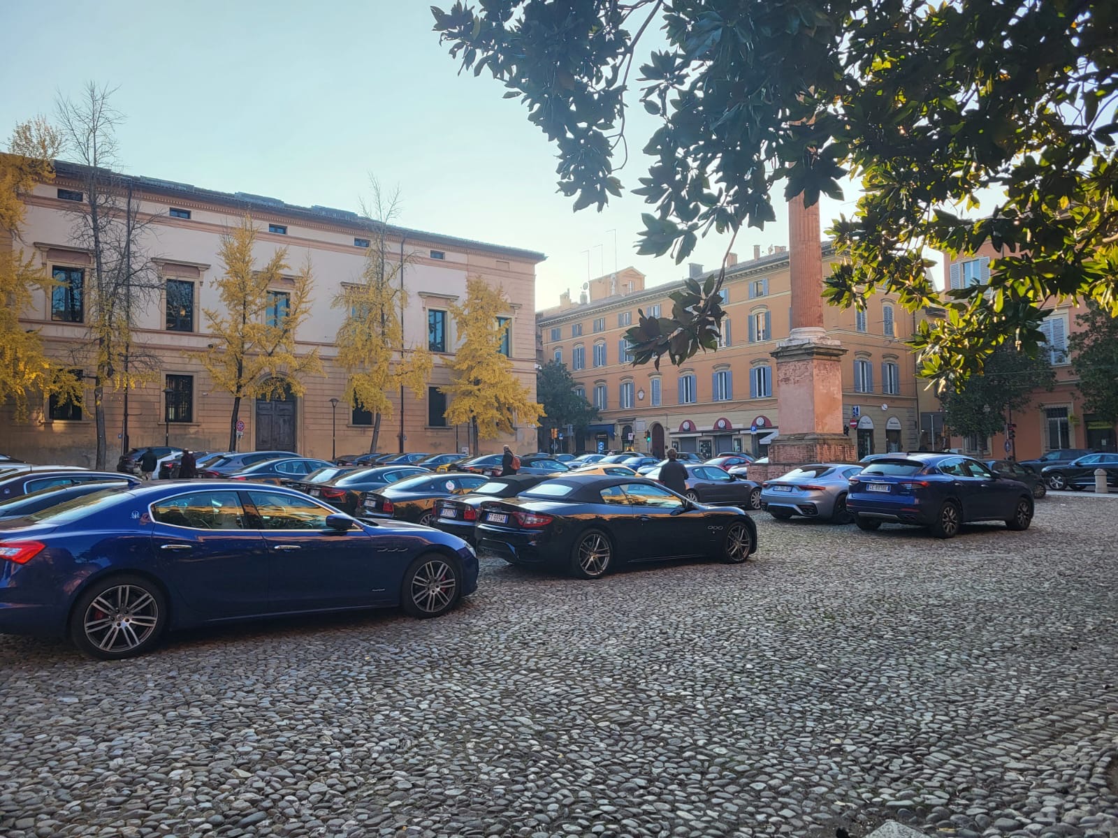 Après l'examen attentif de ces 4 Maserati de course (ou tout comme pour la GT2 Stradale), nous avons une heure de route pour rejoindre Bologne, là où est née l'entreprise Maserati il y a exactement 110 ans jour pour jour. Stationnement place San Domenico à Bologne :
