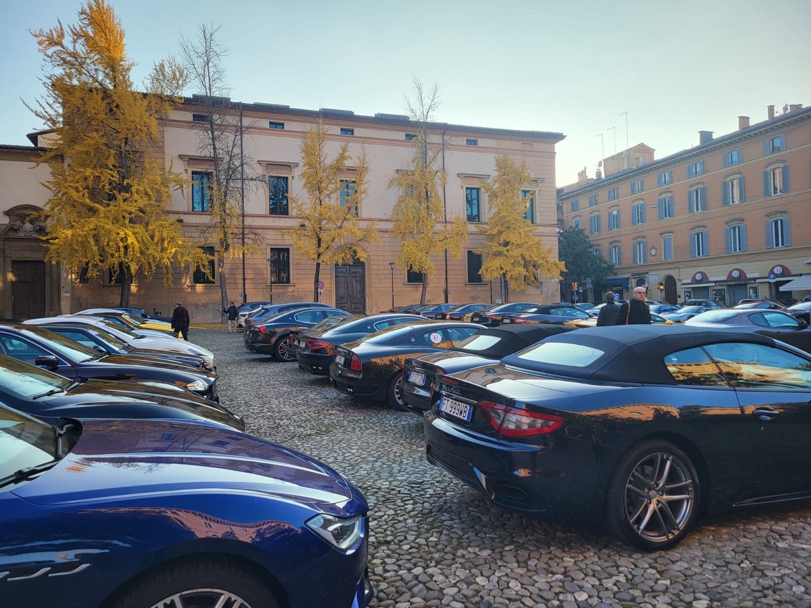 A noter à gauche au fond le futur musée Panini (Casa Maserati) aux murs bleus. Le jour baisse, on va partir pour l'usine de Modène où se tiendra la présentation de la GranTurismo 111th anniversary :