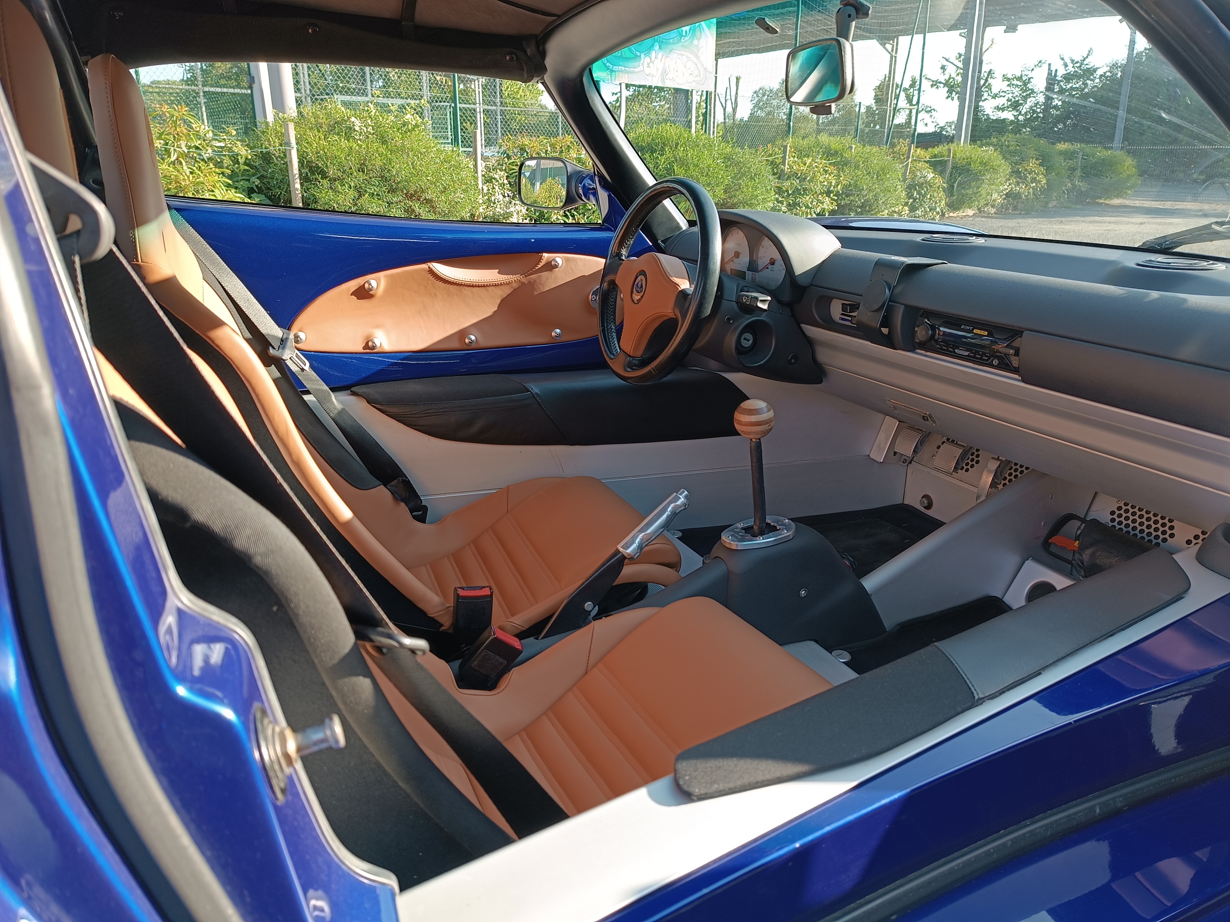 Merci ! C'est un intérieur sur-mesure réalisé par un sellier bien connu dans le monde des Lotus : ça ne lui avait pas fait de mal car j'en avais assez de la sellerie en tissu d'origine qui était vraiment de mauvaise qualité..
