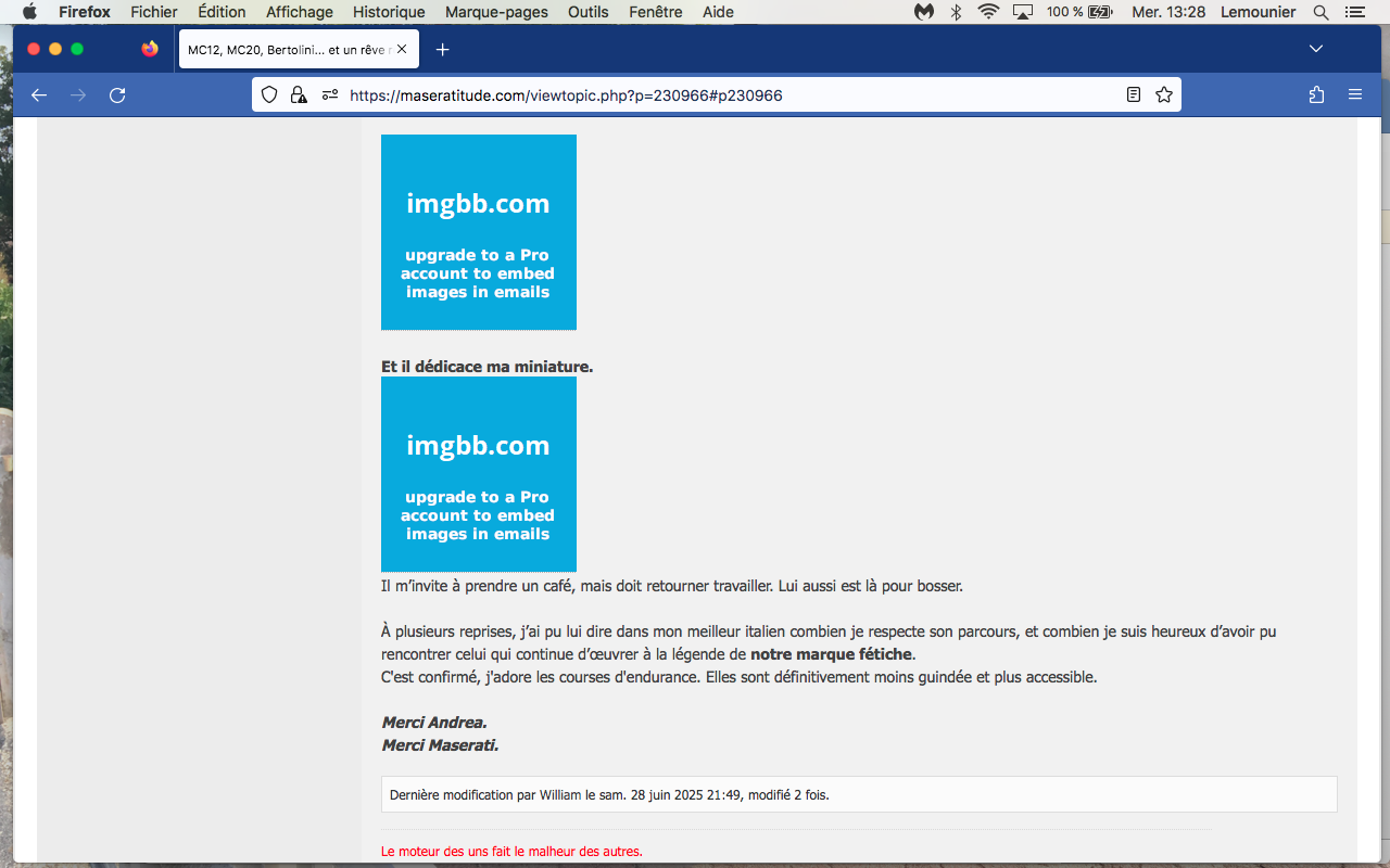 Je crois bien que je n’ai plus crée de poste depuis… 2021. Et pour cause : plus de Maserati dans le garage depuis cette date.
