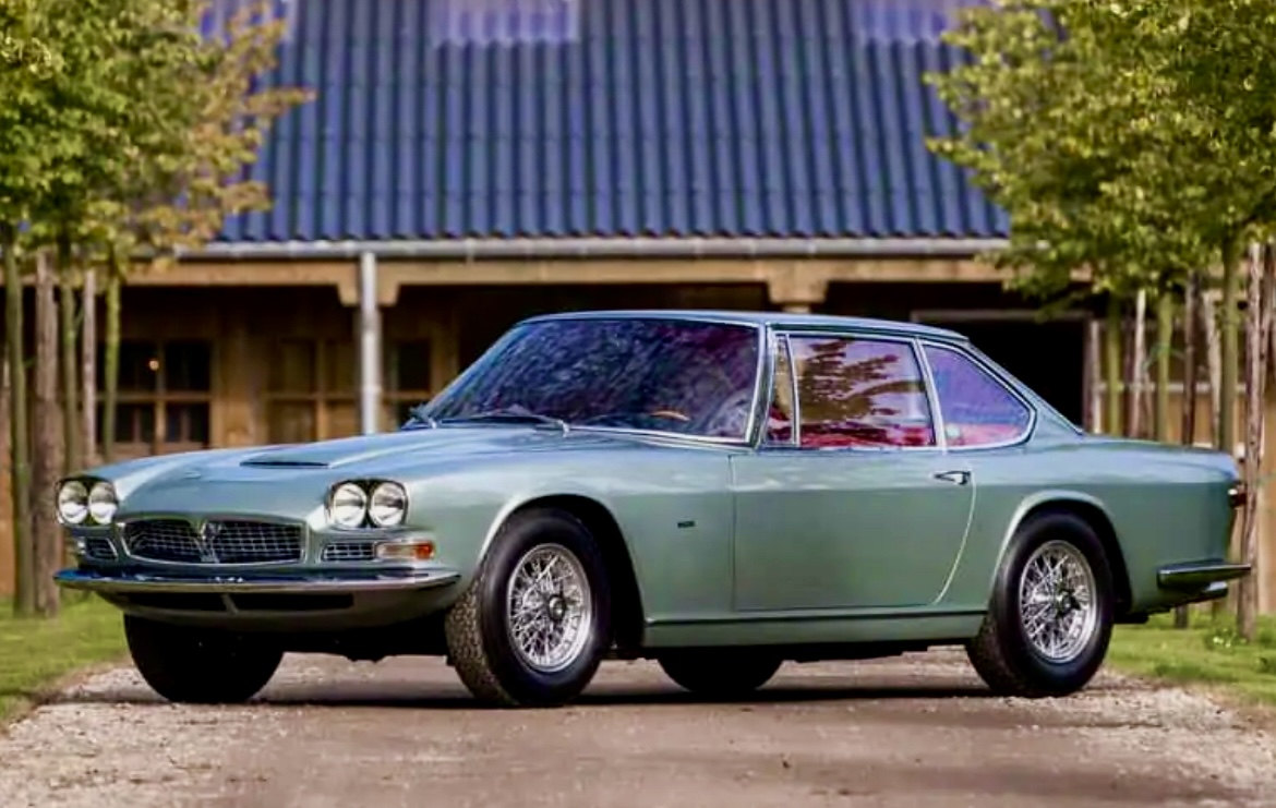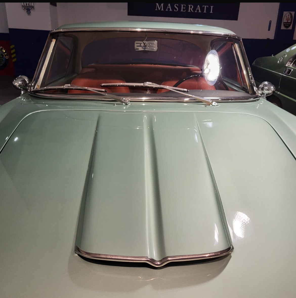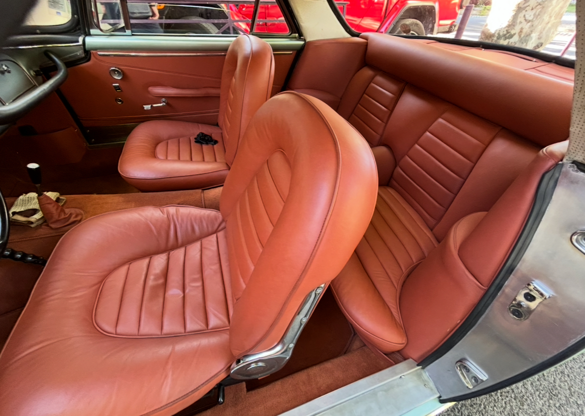 Sa couleur est le Verde Opale, une couleur du catalogue Maserati assez rarement choisie et qui se retrouvait également sur un célèbre et très primé prototype Mexico réalisé par Pietro Frua :