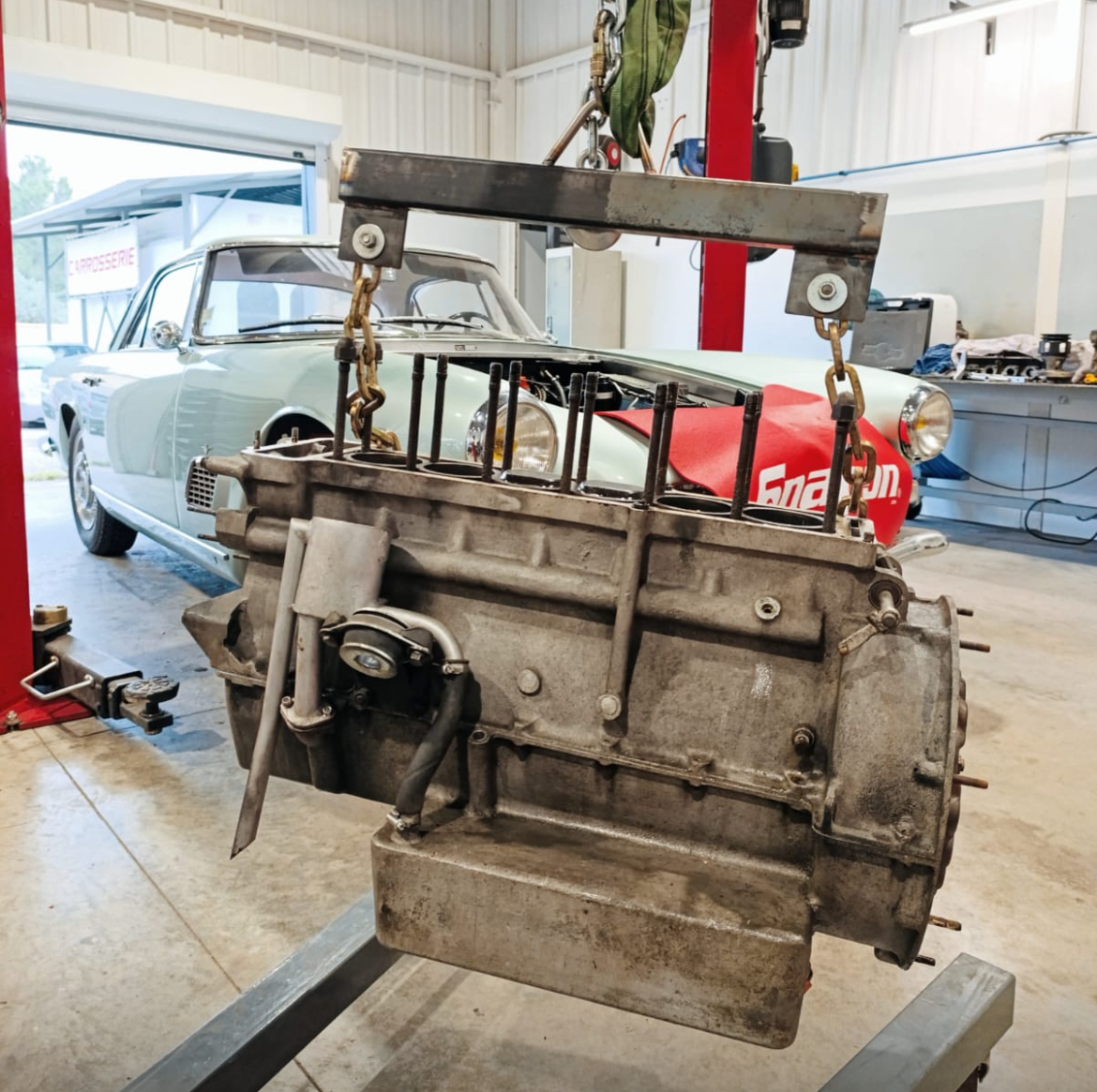 Le moteur de "notre" belle en cours de restauration :