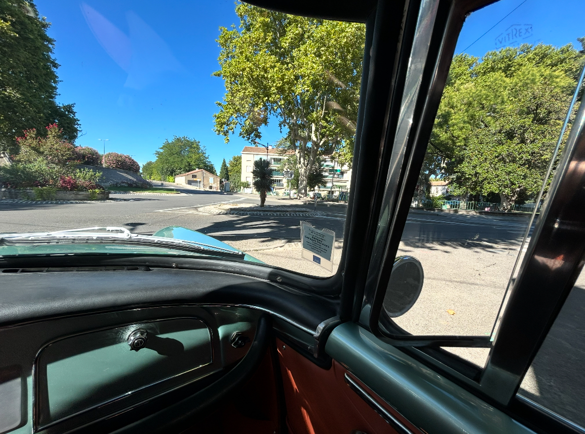 Bon, pas de ceinture de sécurité en 1964, donc pas d'obligation d'en installer de nos jours ! C'est un peu désarmant, on la cherche automatiquement en s'installant, tant on y est habitué ! ça génère un sentiment de liberté mais aussi d’alerte, de "qui-vive" accentué, un peu comme en moto en fait !