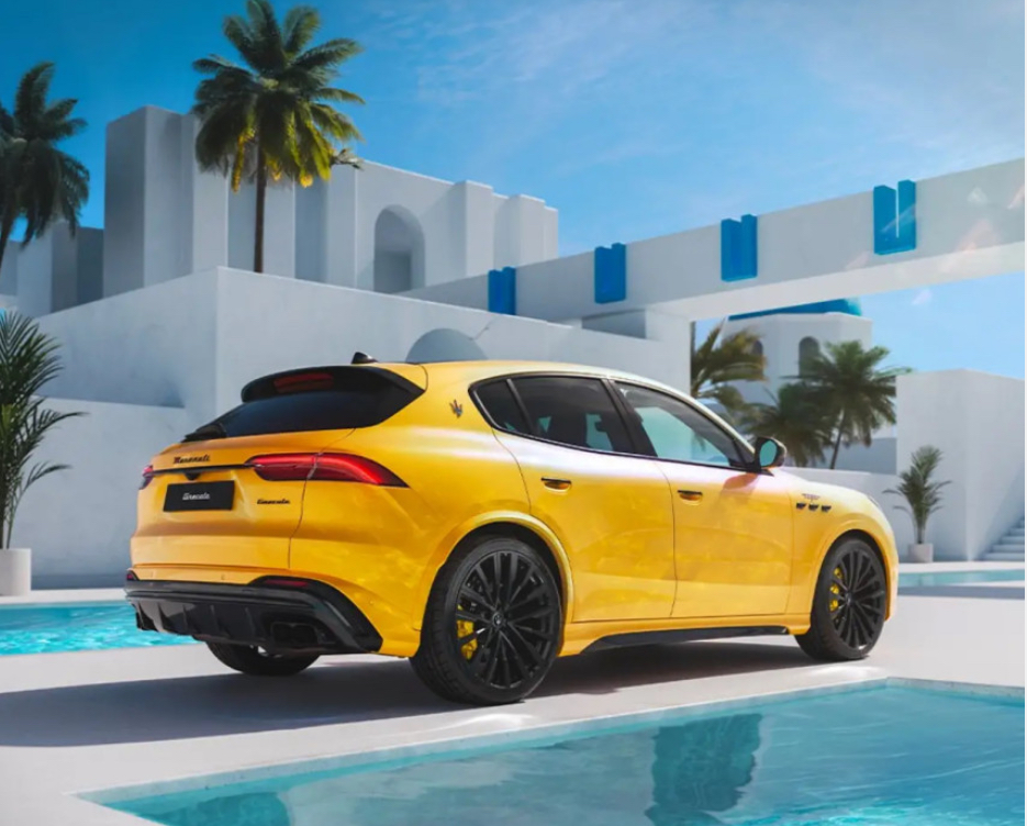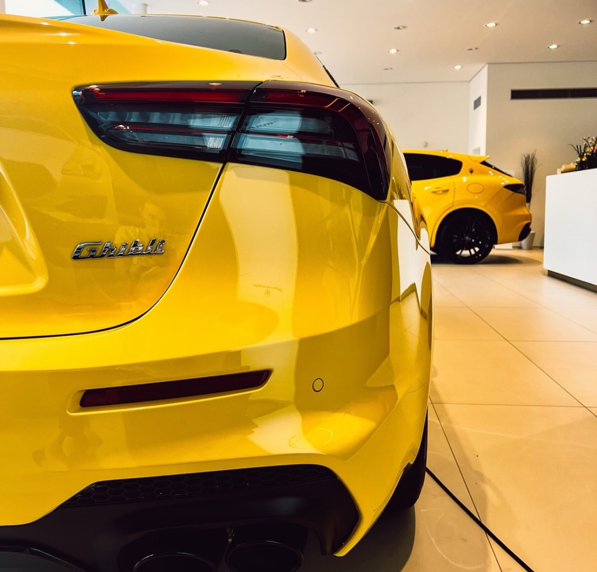 GT2 Stradale enlivrée Giallo Genio et GranTurismo en Giallo Modenese, présentées pour célébrer le partenariat Maserati - Acqua di Parma dans le cadre prestigieux de l'Anantara Palazzo Naiadi, surplombant la Piazza della Repubblica à Rome. Samocar, le célèbre concessionnaire local, a participé en fournissant les voitures. Aussi exposé à l'intérieur, la Ghibli Spider qui a servi aux photos de la campagne publicitaire.