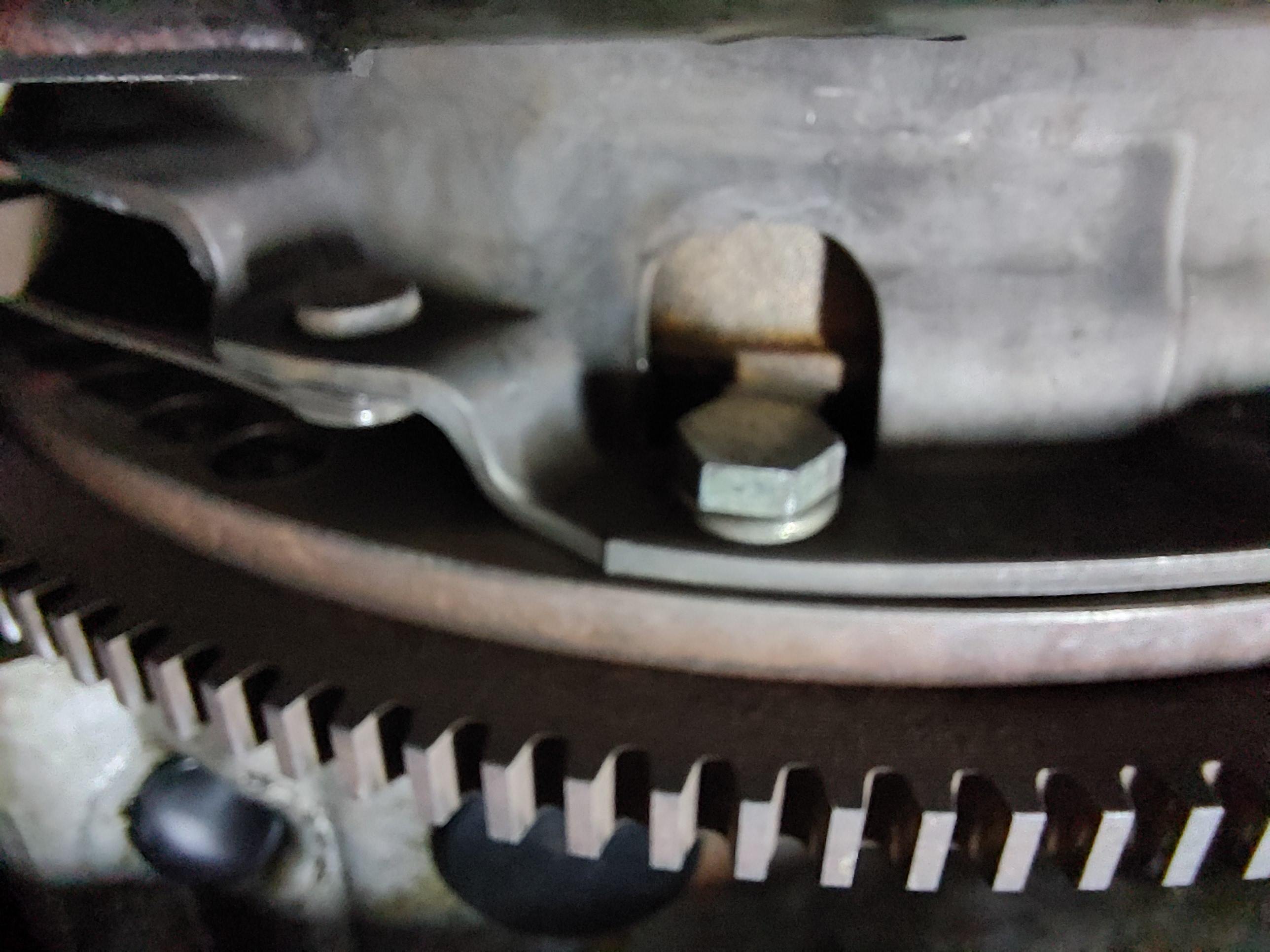 Ca c'est mon 240mm vu d'en bas. Derrière la vis de 13 (qui tient le mécanisme) est le disque d'embrayage.