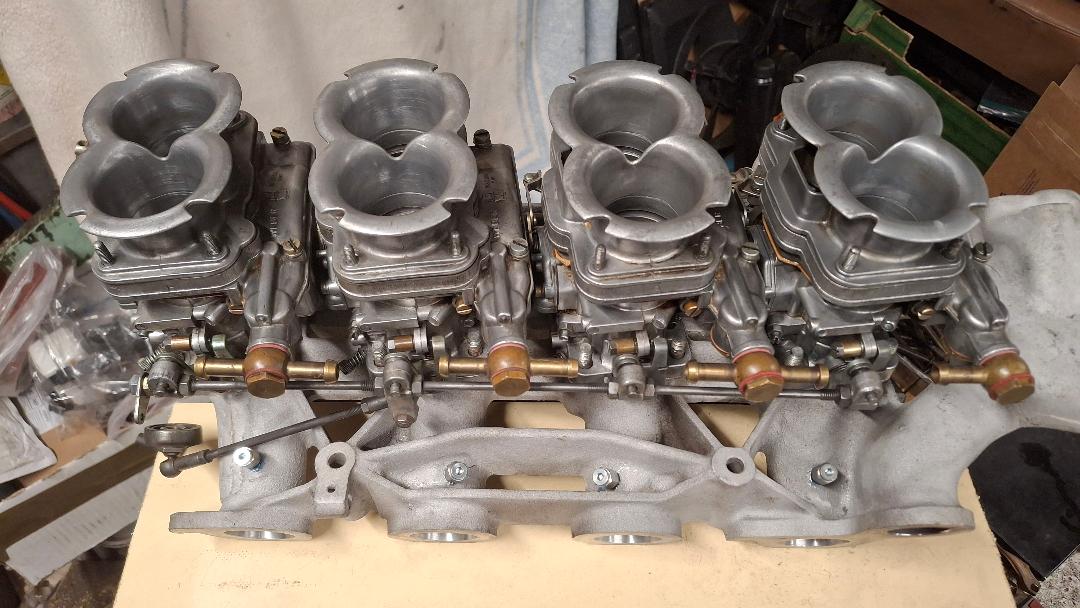 Voila mes carburateurs rénovés: J'ai installé sur le collecteur, au dessus de chaque conduit un piquage pour une mesure de dépression sous carburateur afin de faire dans les meilleures conditions le réglage de la carburation.