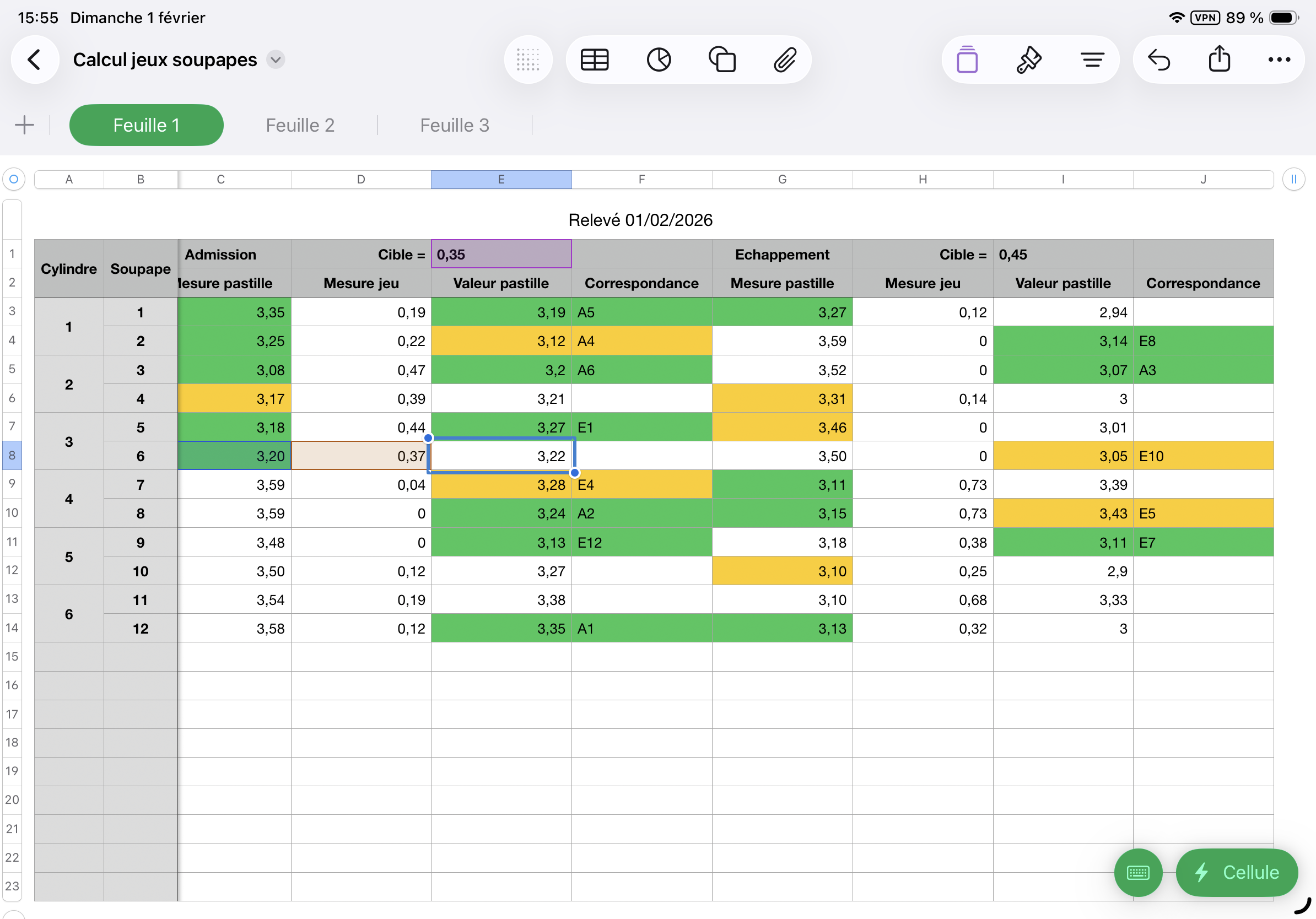 Une fois les culasses serrées, mesure des jeux aux soupapes qui forcément sont dans les choux, du coup j’ai fait des calculs savants.