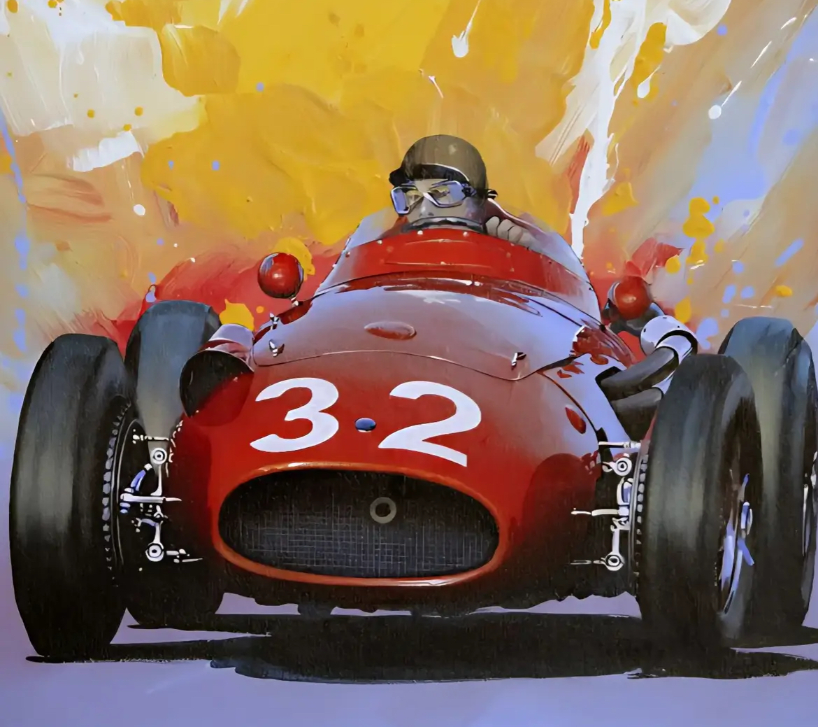 Juan Manuel Fangio était argentin mais sa famille était originaire des Abruzzes en Italie. Bien qu'il ai courru et vaincu sur des autos de diverses marques, la firme Maserati fut toujours particulièrement chère à son cœur. Il a souvent dit qu'' il se sentait chez Maserati comme à la maison" ! Depuis les 4CLT que l'automobile club d'Argentine avait mises à sa disposition jusqu'à la 250F avec laquelle il remporta son cinquième et dernier championnat du monde de Formule 1 en 1957, Maserati lui apporta des victoires et il en offrit à Maserati.