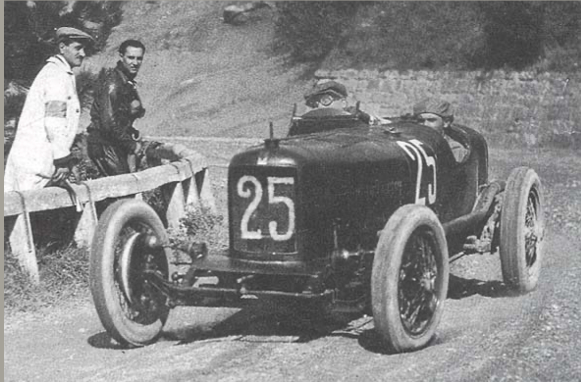 Le Comte de Sterlich Aliprandi, mécène des frères Maserati pour la conception et la construction de la Tipo 26 : Victoire en classe 1500 d’Alfieri Maserati (Guerino Bertocchi en mécanicien embarqué) avec la première Tipo 26 à la Targa Florio le 25 avril 1926 :