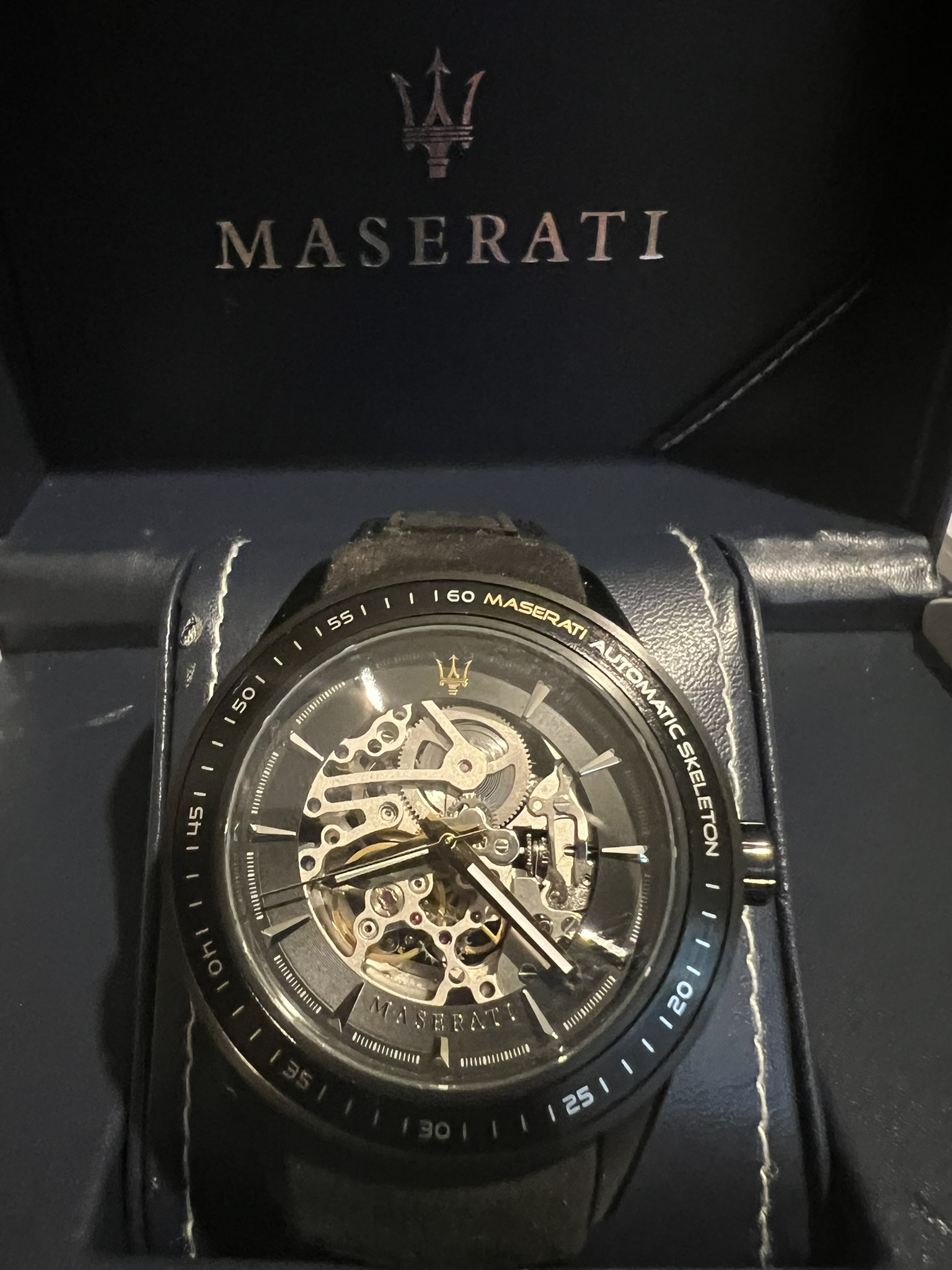 Petit ajout à la collection : une automatique simple, avec quelques détails sympas, le bracelet par exemple ou bien les 3 ouïes Maserati sur le côté du boitier. Très bel exemplaire. J'adore.