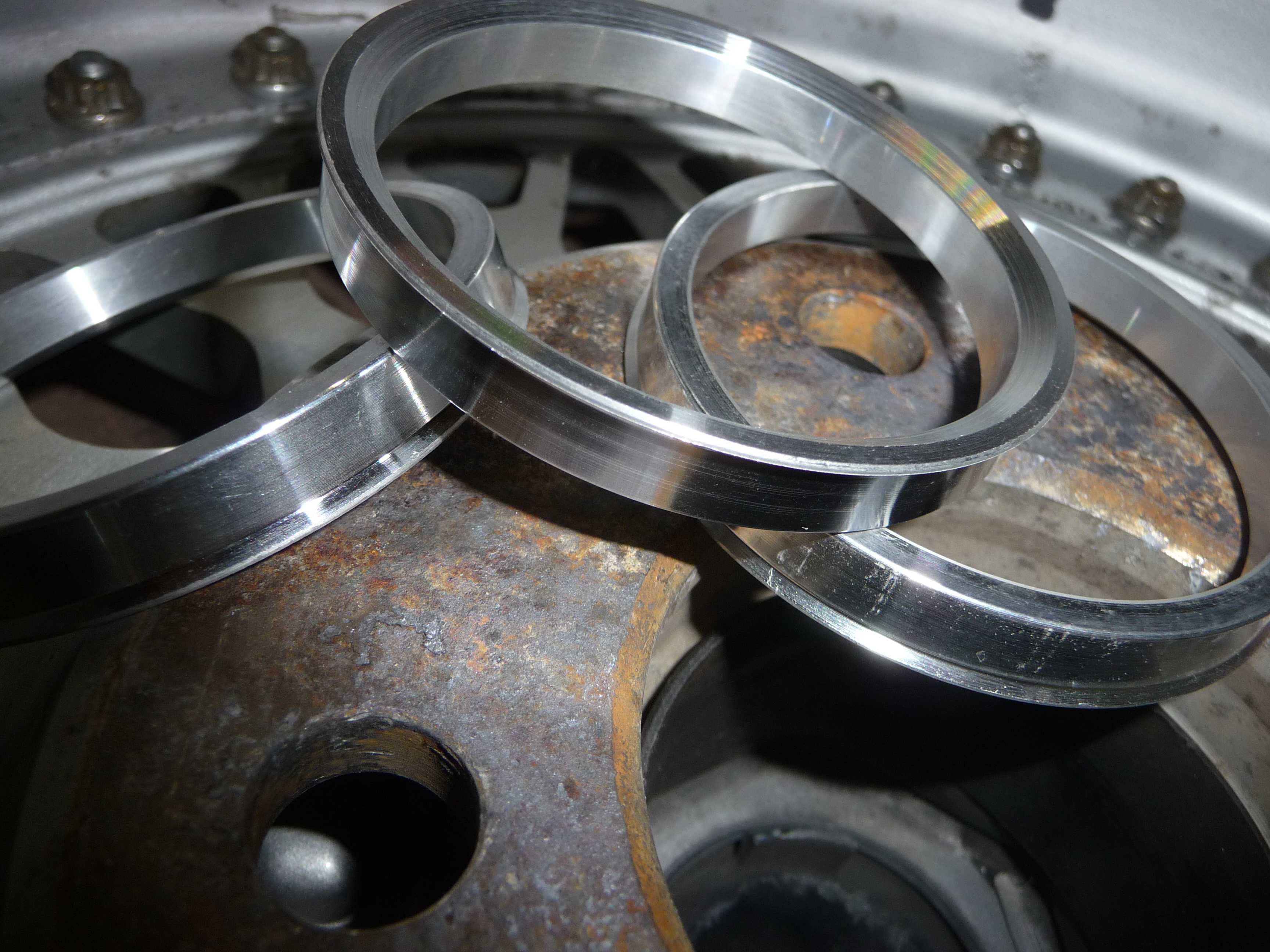 J'ai approvisionné en UK des bagues de centrage pour adapter le diamètre de l'orifice central (73.1 mm) à celui du moyeu de 65.1 mm (pas facile à trouver les bagues dans cette dimension et en alu forgé).