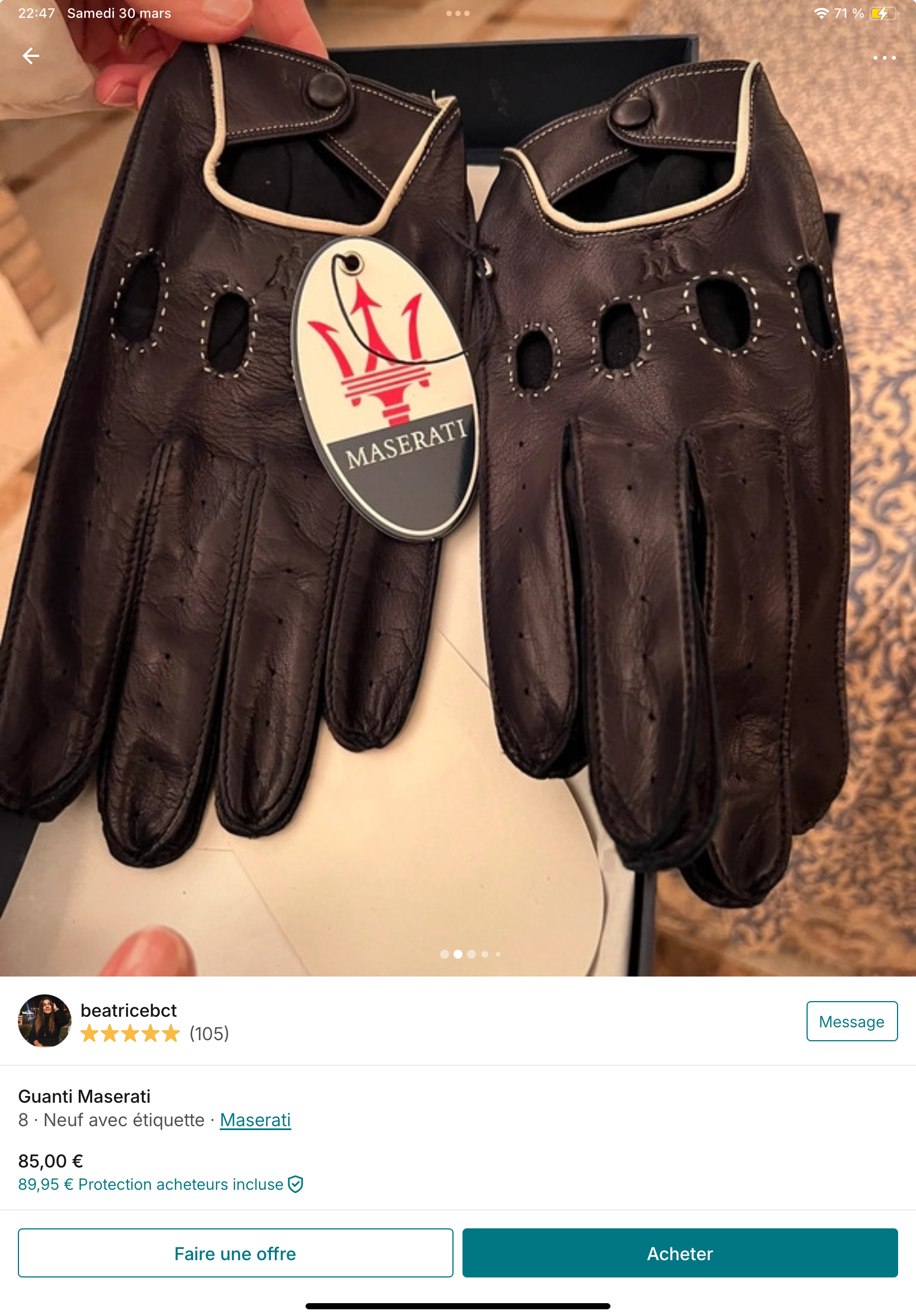 Une paire de gants Maserati sur Vinted