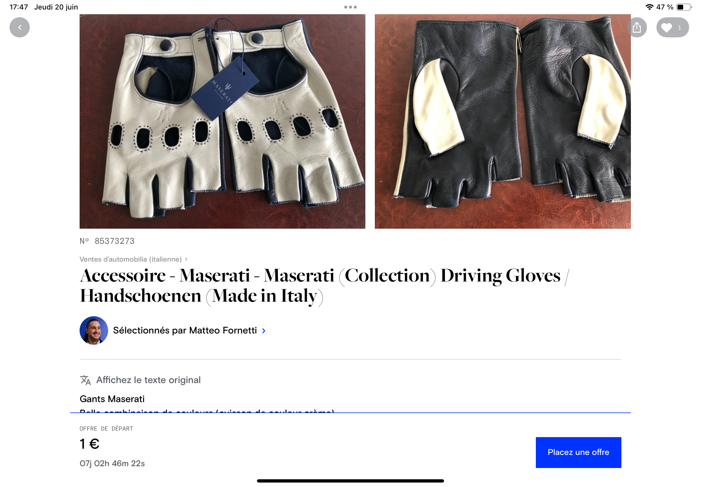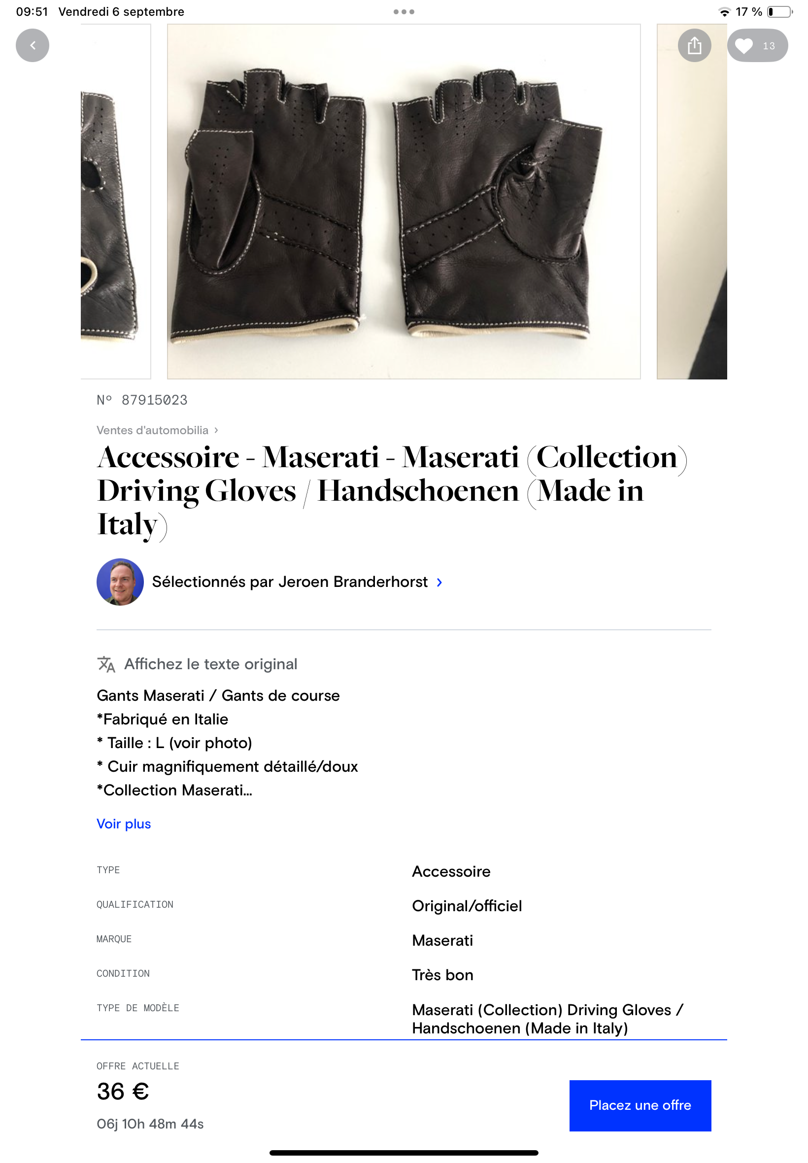 Une paire de gants Maserati sur Catawiki :