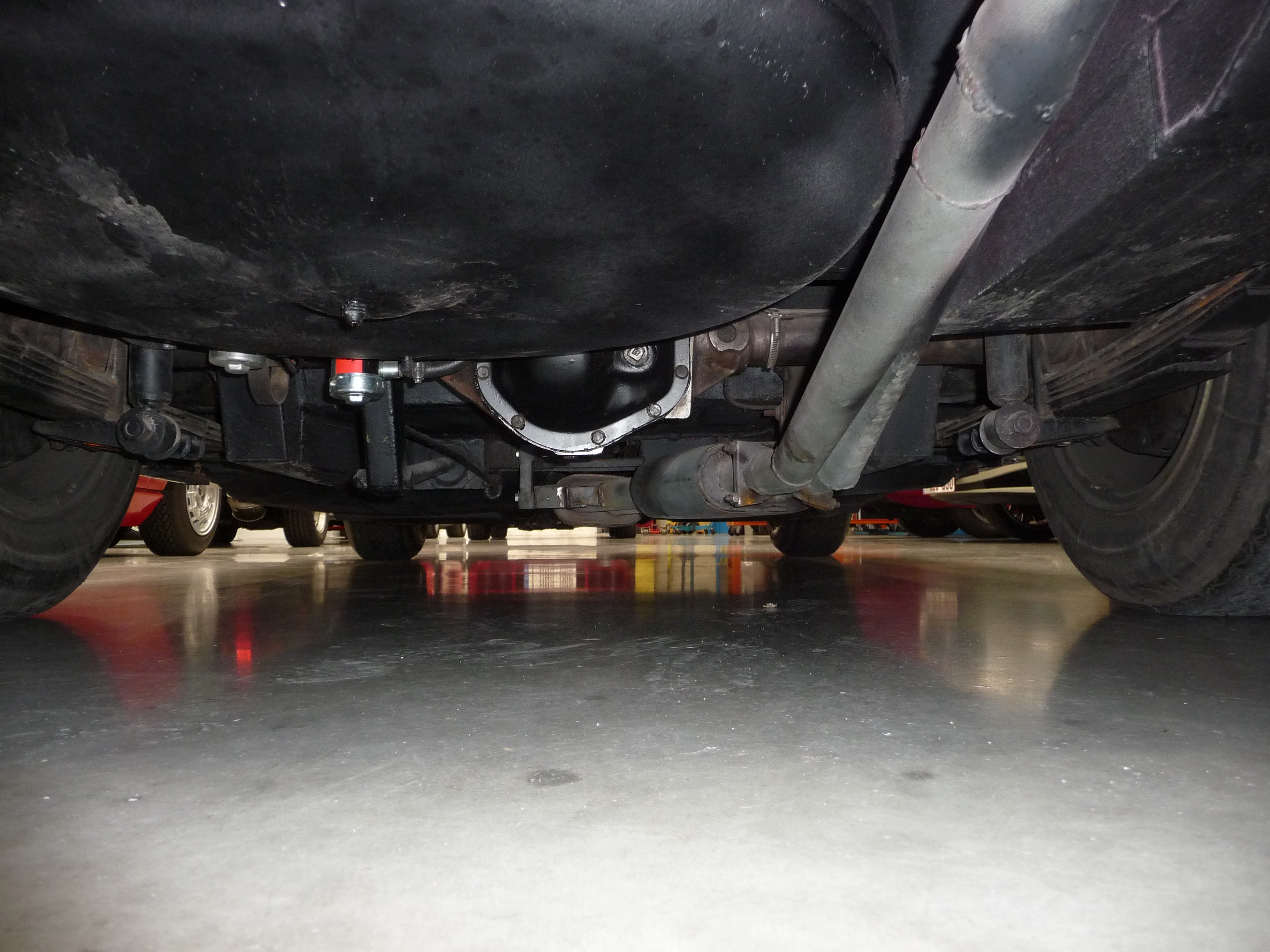 - l'échappement a été remonté en partie centrale d'environ 2 cm en "tordant" un peu la ligne; elle apparaît maintenant mieux rehaussée sous le plancher:
