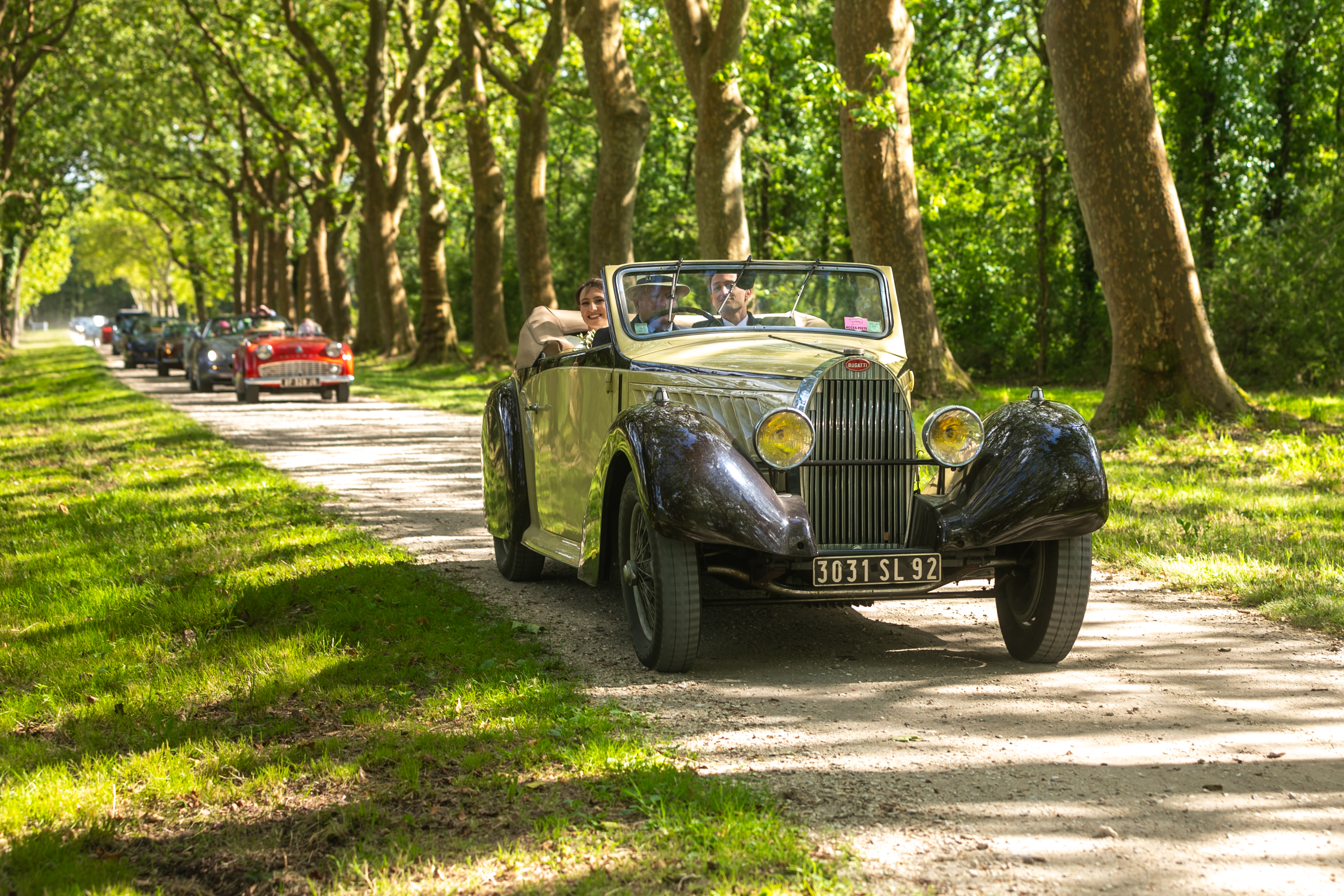 Magnifique! Bien l'idée de combiner mariage et rassemblement de voiture